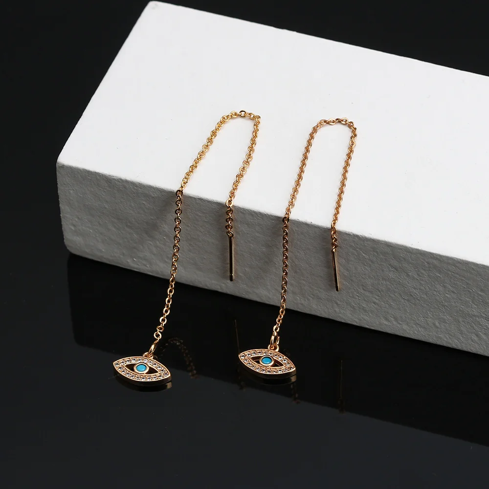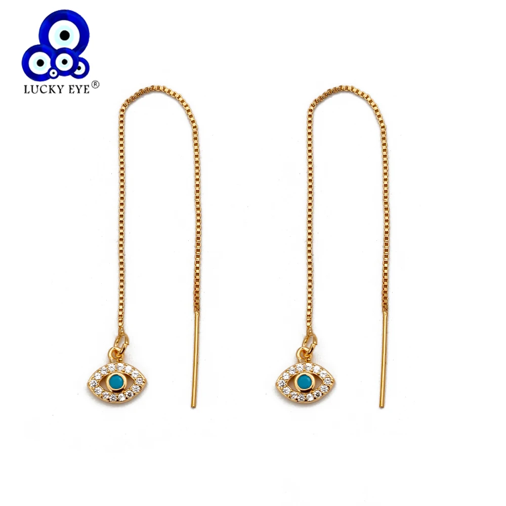 Женские длинные висячие серьги Lucky Eye Fatima Hamsa, кисточка золотого цвета с цепочкой, ювелирные изделия для девочек BD18