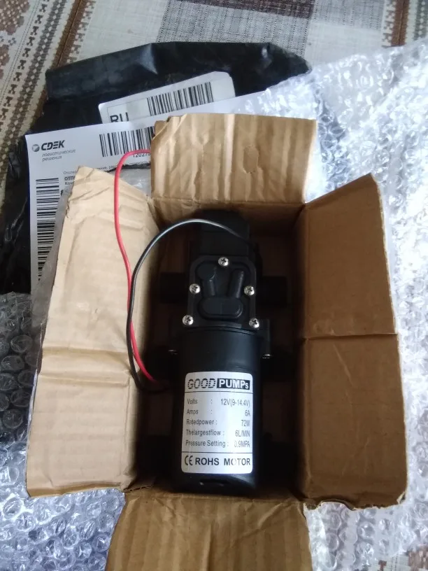 насос гудит и качает :)) всё отлично - как и ожидалось. буду мастерить - опрыскиватель ;) доставили — очень быстро, СДЭКом (курьером). мне всё понравилось. а если что-то пойдёт «нитак» — отпишусь дополнительно... ура :)