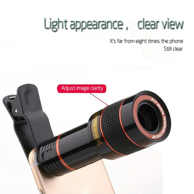Особенности:(1) Зрительная труба имеет 8 кратное увеличение, с помощью которой можно регулировать фокусное расстояние хорошо.(2) телескоп можно использовать как монокуляр.(3) подходит для большинства видов мобильных телефонов, включая флип-телефоны и барные телефоны,(4) телефон имеет заднюю камеру, может быть подключен к телескопу через зажим.(5) Качество Изображения мобильного телефона может быть улучшено.(6) применяется для просмотра игры, концертов, туризма, наблюдения за любителями животных, новости репортёра съемки на большие расстояния и т. Д.(7) частный сыщик фотографирует судмедработников, геологоразведку, управление лесным хозяйством, расписание железных дорог и т. Д.(8) В комплект входит: один телеобъектив, один зажим, одна салфетка для очистки.