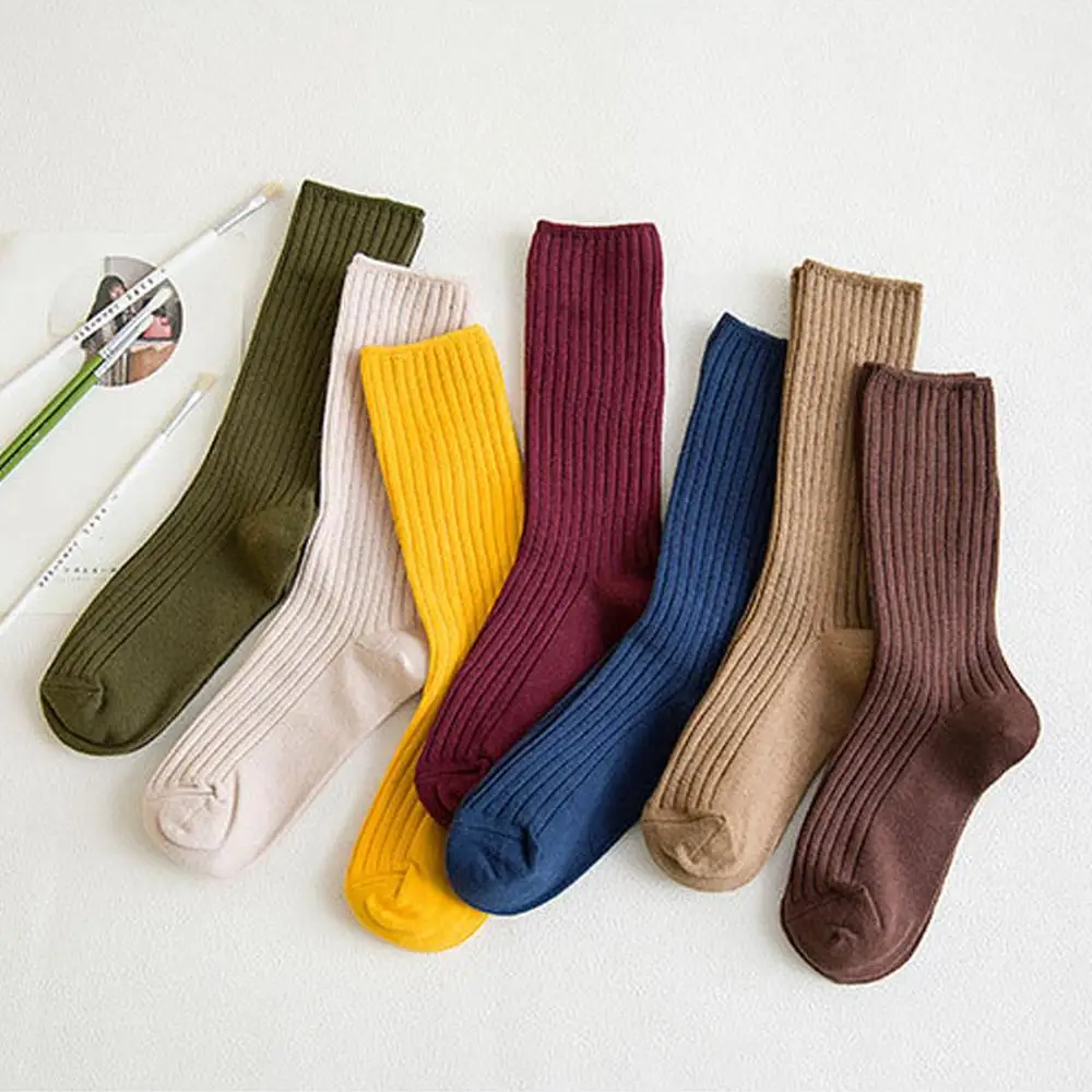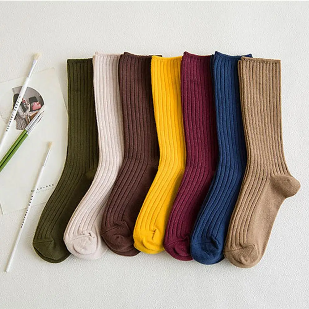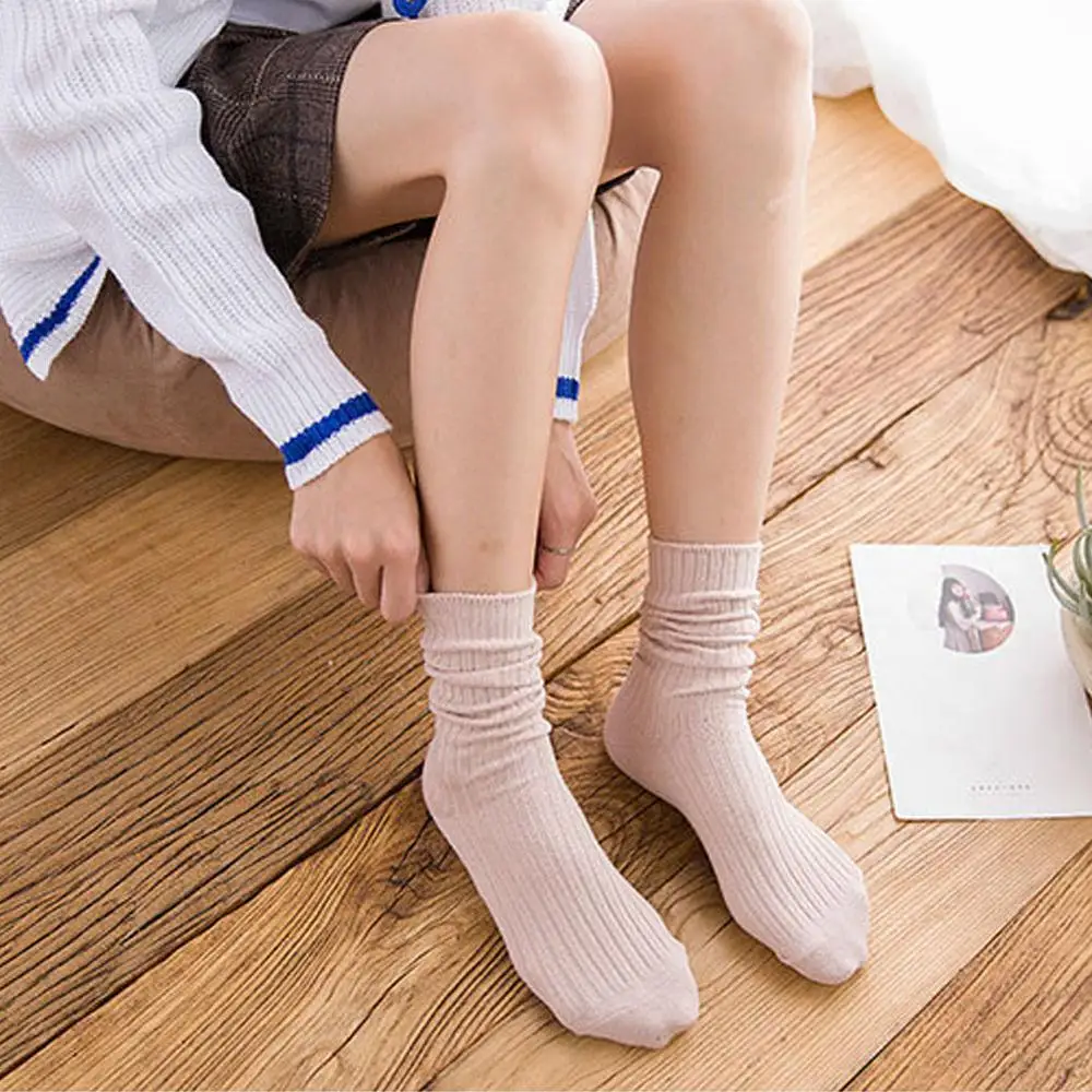 Однотонные женские хлопковые свободные носки в стиле ретро осенне-з...