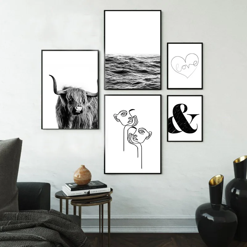Черно-белая сексуальная холщовая живопись для девочек, модный посте...