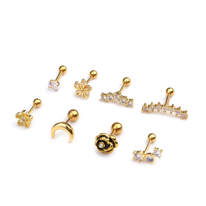 Новый дизайн Cz изогнутый стержень серьги, Надеваемые На ушной хрящ раковина пирсинг спираль гвоздик Украшения Для Пирсинга Ушей