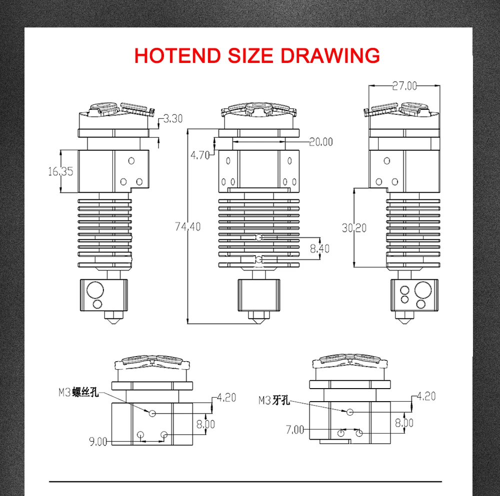 3D-принтер hotend, часть 3IN1-S1, Горячий Конец, 3 в 1, цветная печатающая головка 0,41,75 мм, J-головка для экструдера Titan MK8 Bowden