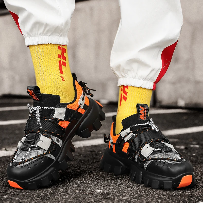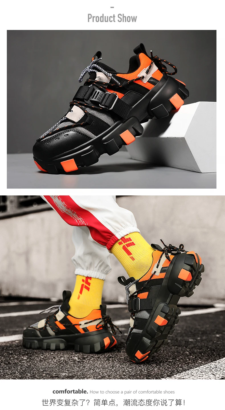 Мужские кроссовки в стиле Харадзюку, повседневная обувь на толстой подошве, с пряжкой, в стиле хип-хоп, для студентов, подходит для ходьбы и тенниса, на осень