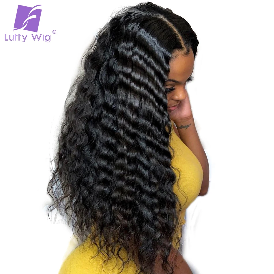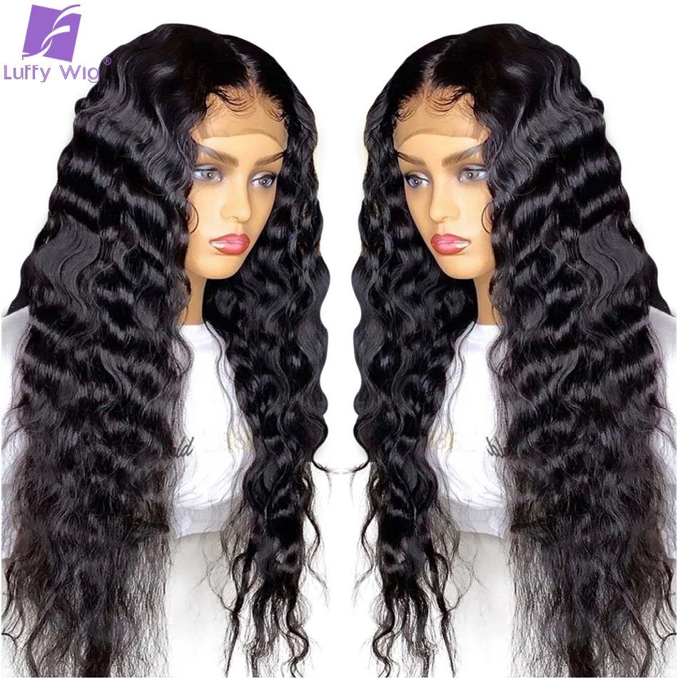 Бесклеевые волосы Remy, искусственная кожа головы, кружевной парик 13x4, бразильские свободные волнистые фронтальные человеческие волосы, предварительно выщипанные, плотность 150% Луффи