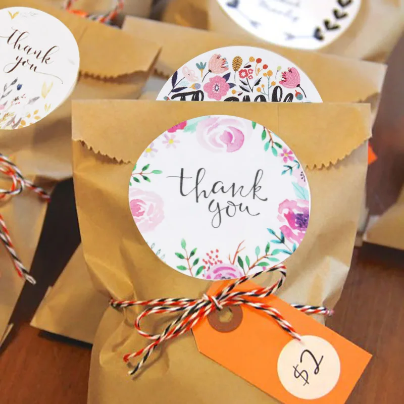 Бумажные стикеры с принтом "спасибо", 500 шт., подарочные пакеты, э...