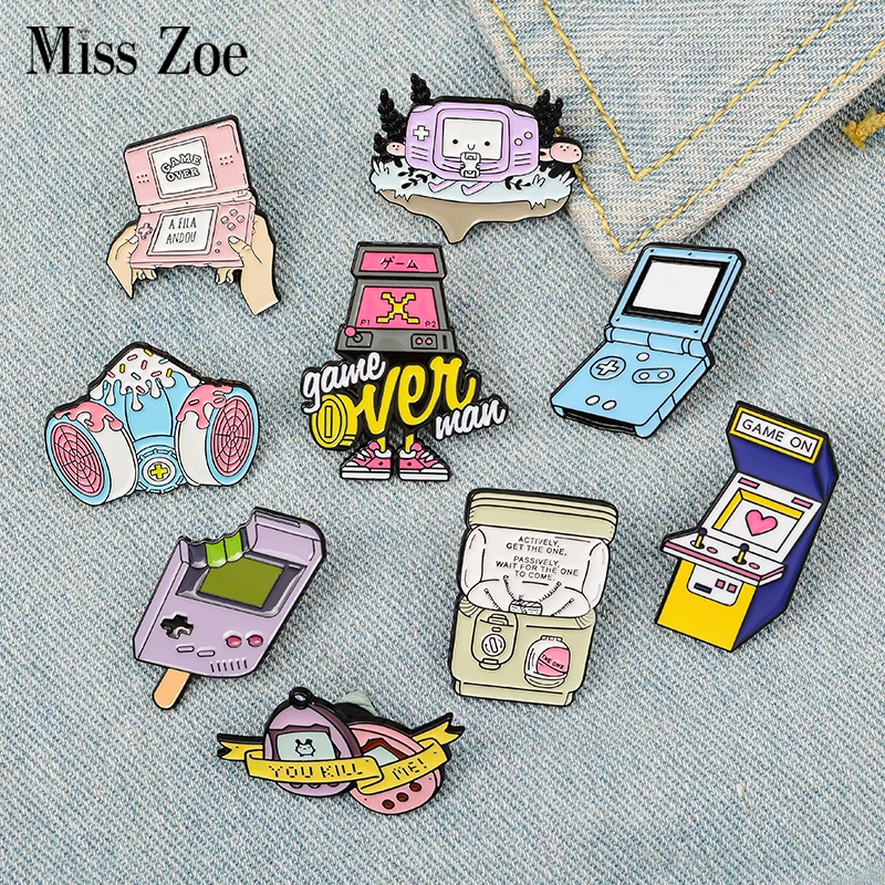 Игровая эмалевая заколка на заказ, розовый, фиолетовый, Ностальгический гашапон, мешочек для брошек, для одежды, лацкан, ручная игровая консоль, значок, Ювелирное Украшение в подарок