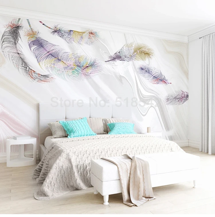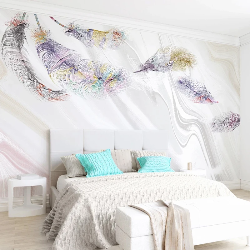 Настенные 3D-обои на заказ с изображением розовых перьев, для спаль...