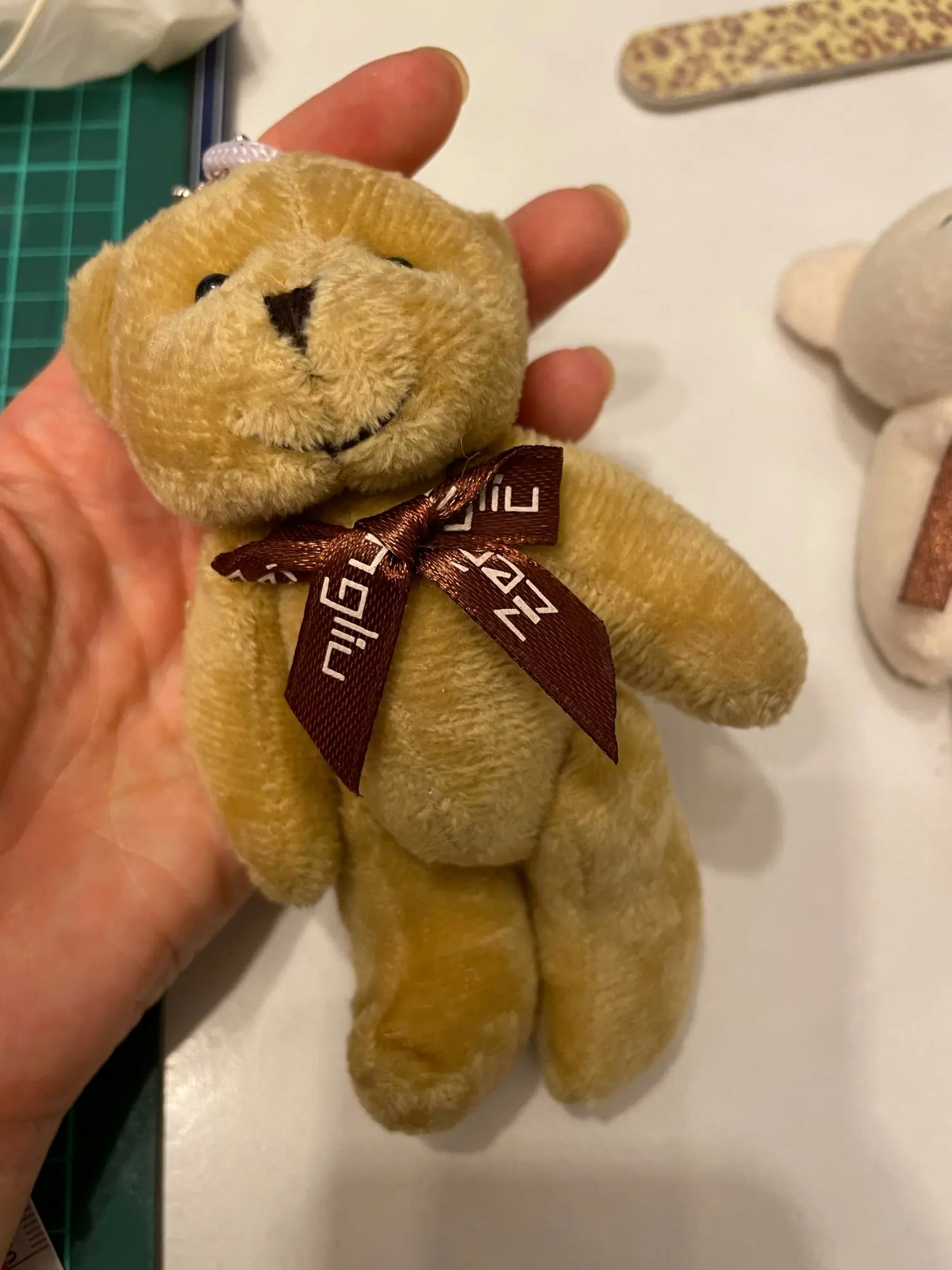 У одного медведя нет брелка на голове.