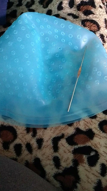 Сначала продырявить, аккуратно!!! Надеваем на голову, набираем, можно, через одну, пропускать отверстия, набираете крючком, после расчесываем волосы, наносим краситель