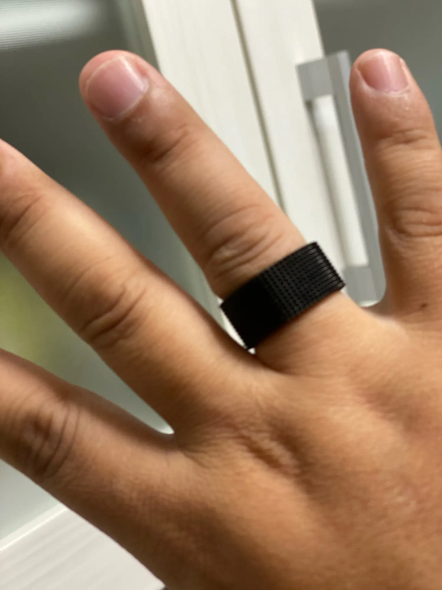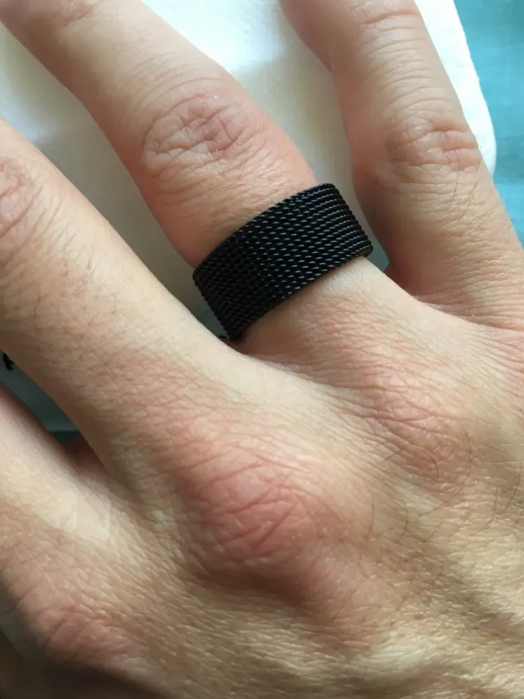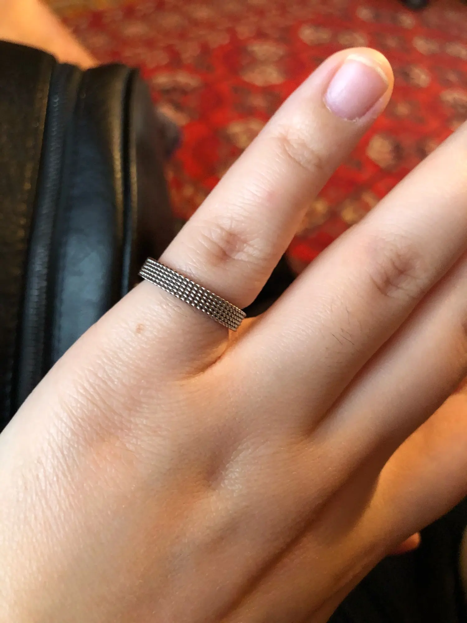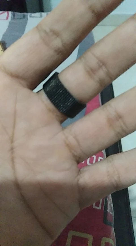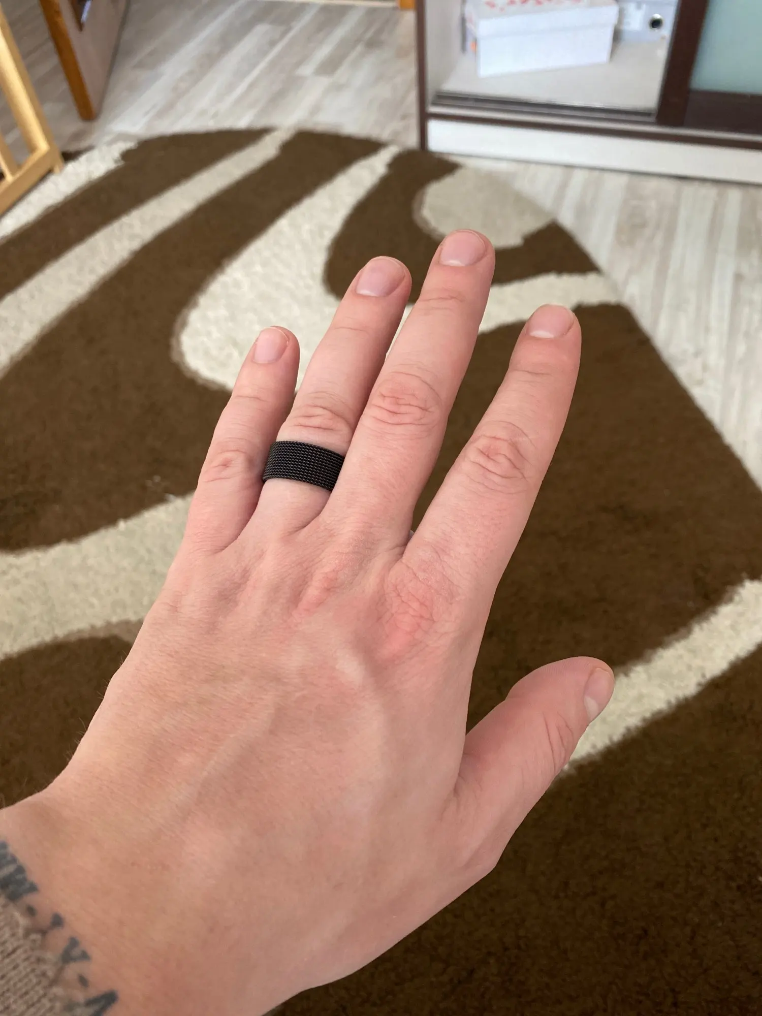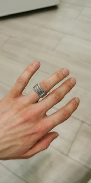 Заказ пришёл за 3 недели, пальцы у меня длинные и худые, поэтому кольцо подбирал на указательный и средний палец, но в итоге пришло на размер меньше, налезло только на безымянный, да и то не плотно сидит, но думаю привыкну. Можно попробовать надеть на указательный палец, но боюсь, что не смогу снять. В целом покупкой доволен, продавцу спасибо)