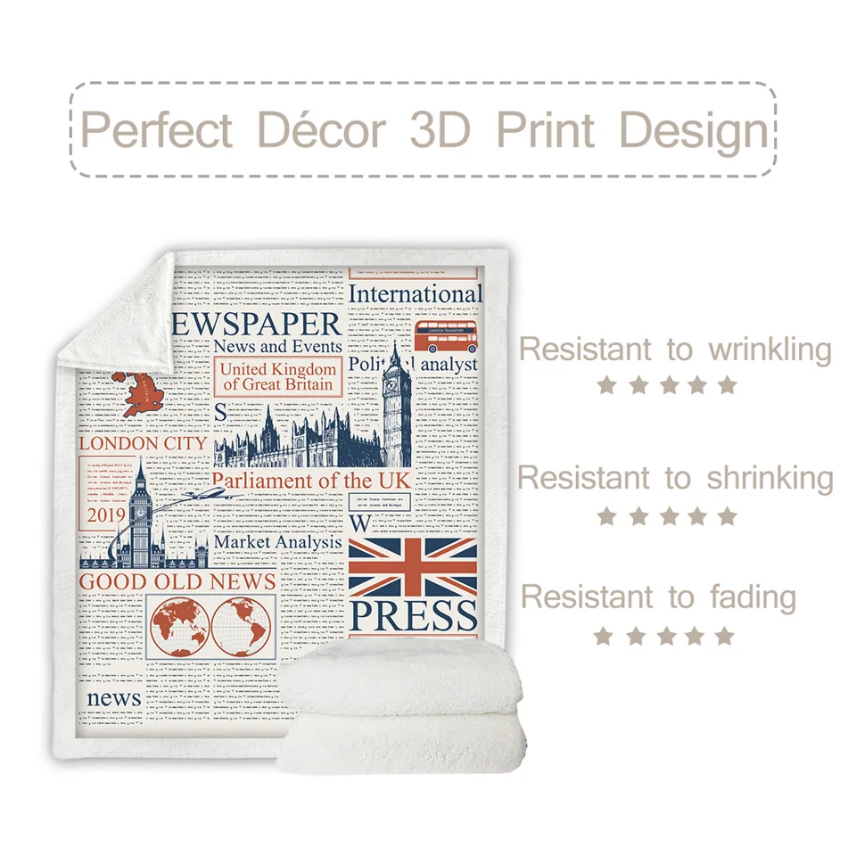 Постельное белье, газета шерпа, Флисовое одеяло, Великобритания, плед, журнал, плюшевое покрывало, новые буквы, классические манты