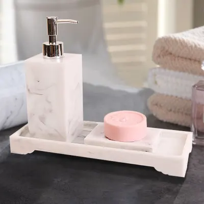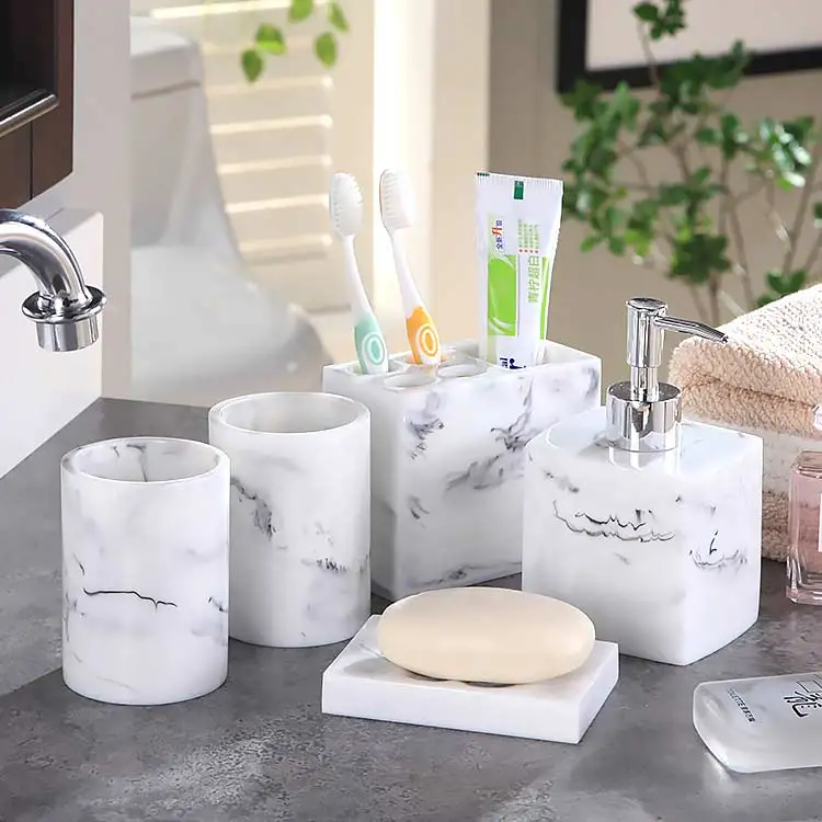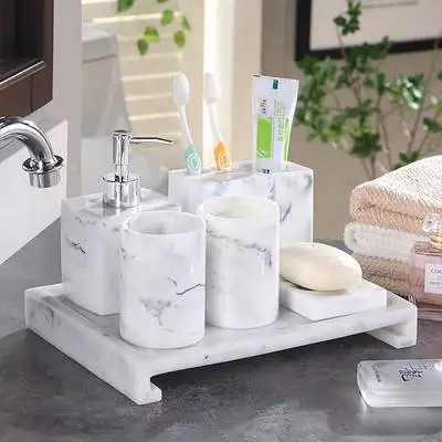 Набор для ванной комнаты из смолы с мраморным узором, держатель для зубных щеток, дозатор мыла, мыльница, поднос для ванной комнаты для свадьбы