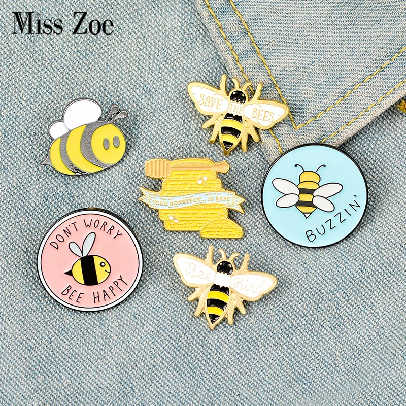 Брошь на лацкан, с пчелами, эмалированная, розовая, синяя, круглая, броши в виде пчел