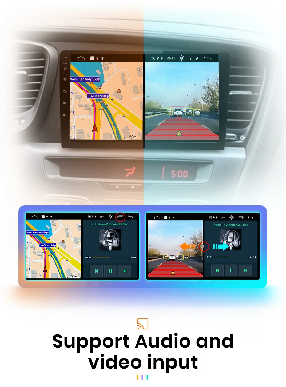 Когда автомобильное радио подключено к ADAS video recorder, это сделает передовую систему помощи при вождении, И предупредит вас, если ваш автомобиль слишком близко к переднему автомобилю или если ваш автомобиль отклоняется от полосы движения, чтобы помочь вашему вождению безопаснее и проще.