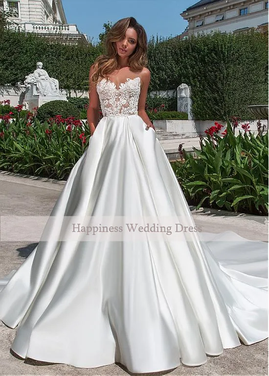 2021 роскошное атласное ТРАПЕЦИЕВИДНОЕ свадебное платье с карманами...