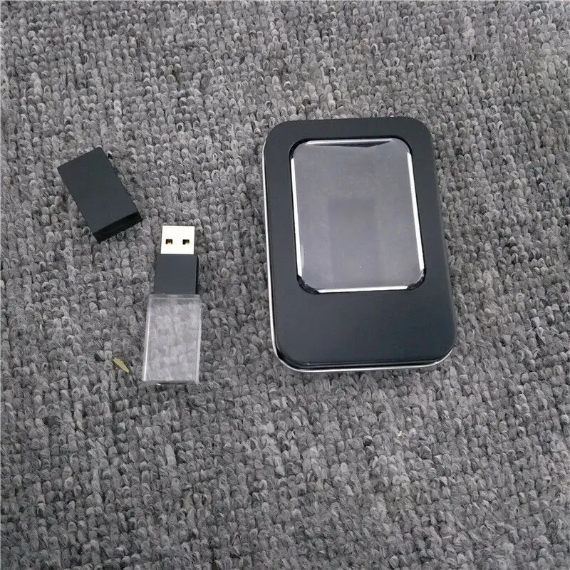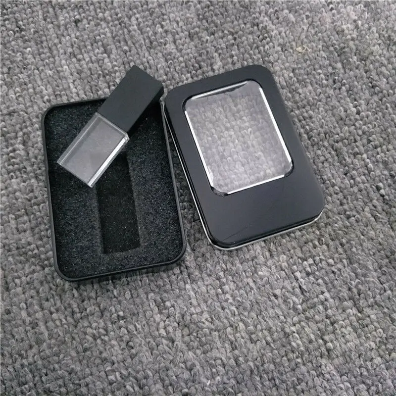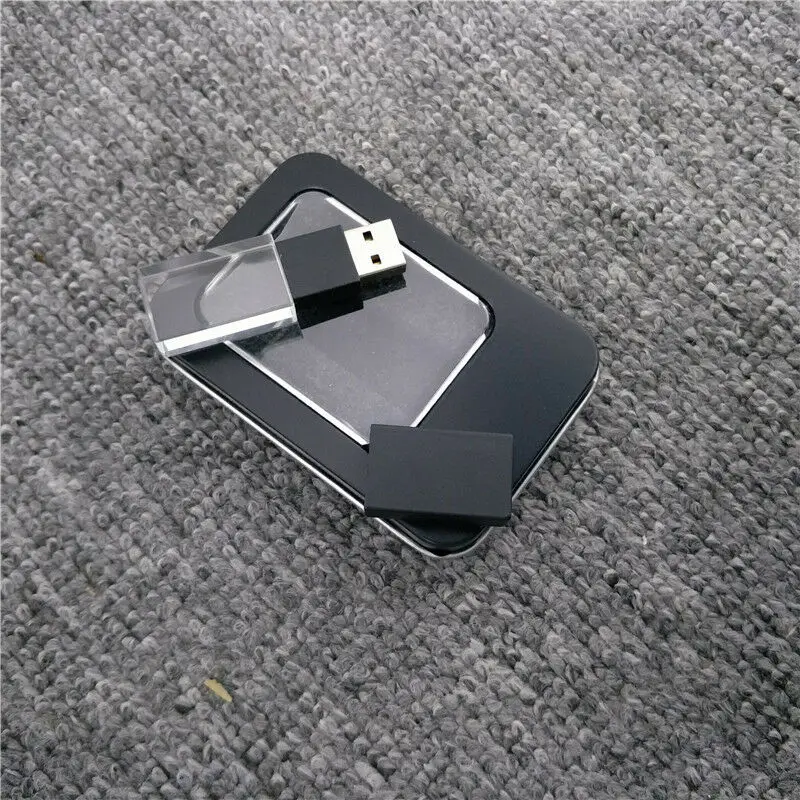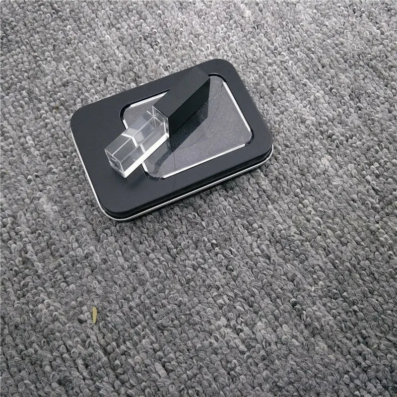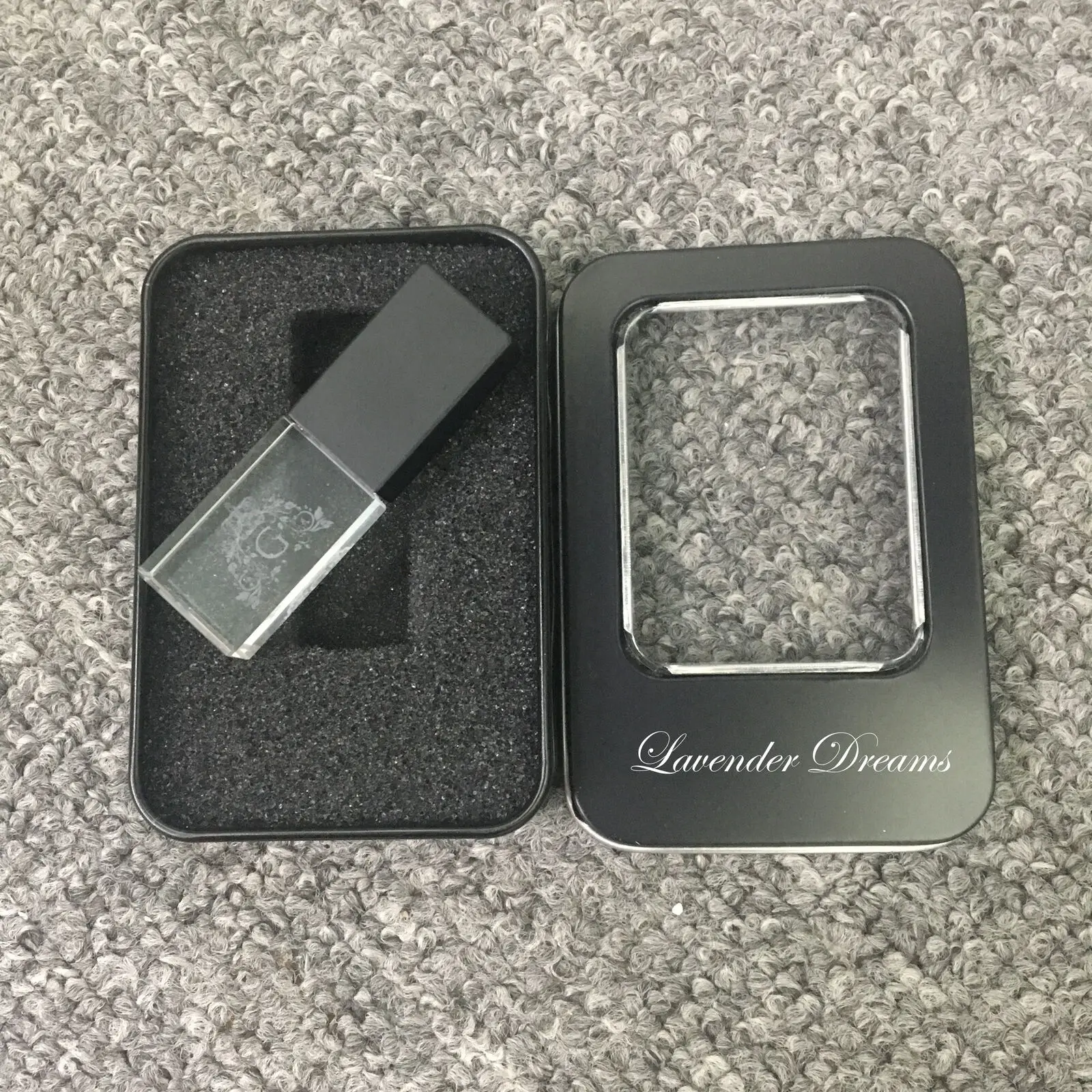 5 шт.лот, бесплатный логотип, черный металлический кристалл, Пользовательский логотип 2,0 USB и Пользовательский логотип, металлическая прозрачная подарочная коробка