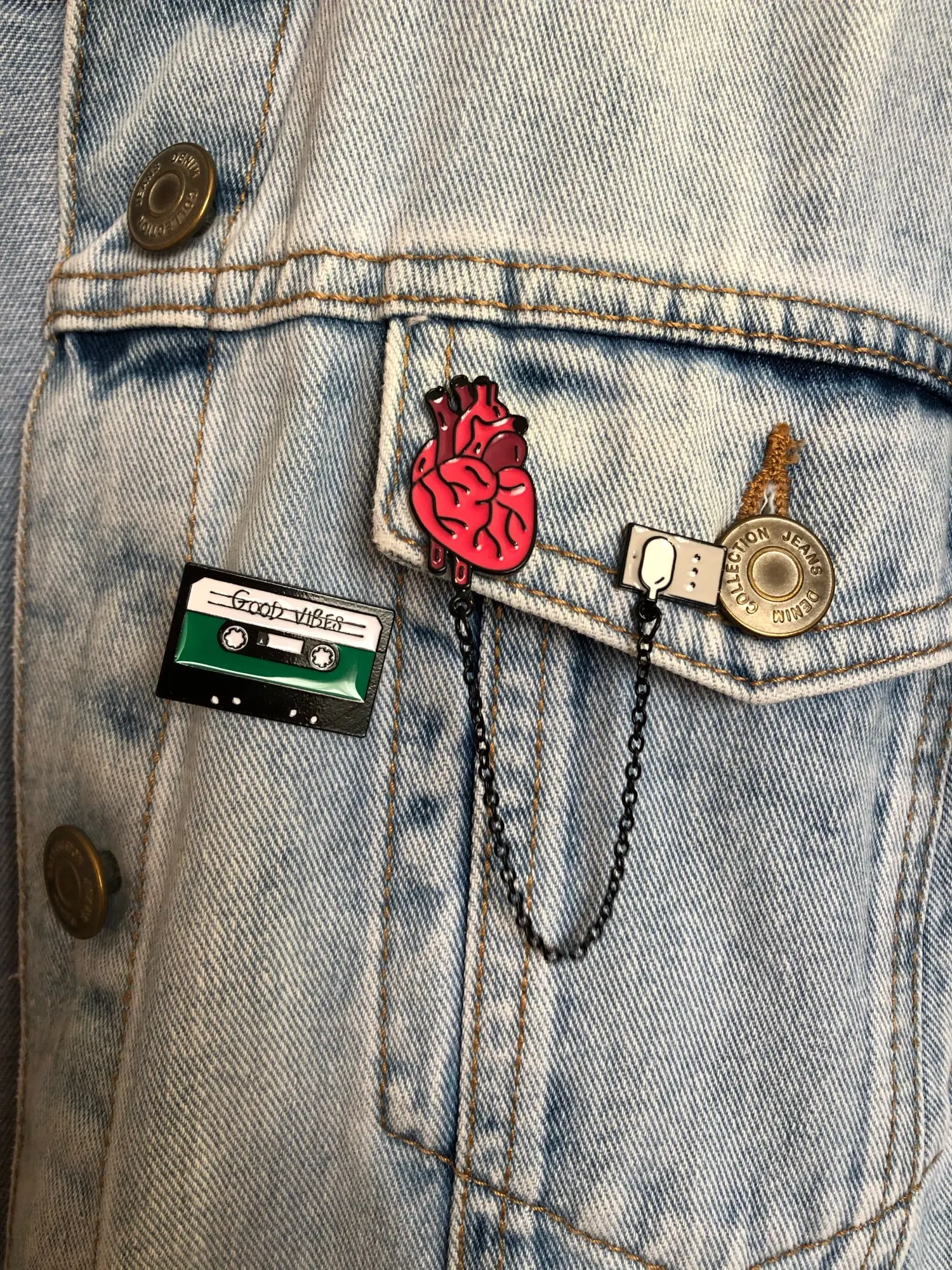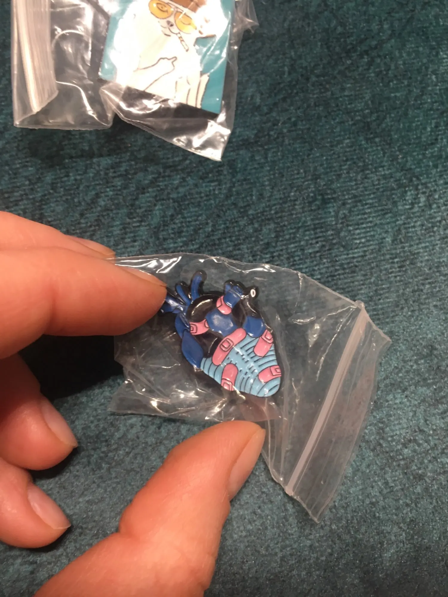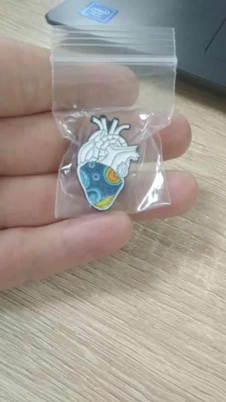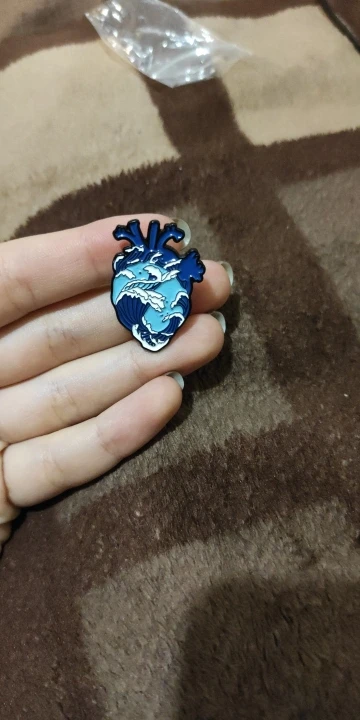 Хороший пин за очень приятную цену. Покрас ровный, ничего не съехало и не оторвалось. Есть сомнения в цепочке, слишком уж хрупкой она кажется, но пока вертела в руках ничего не развалилось.