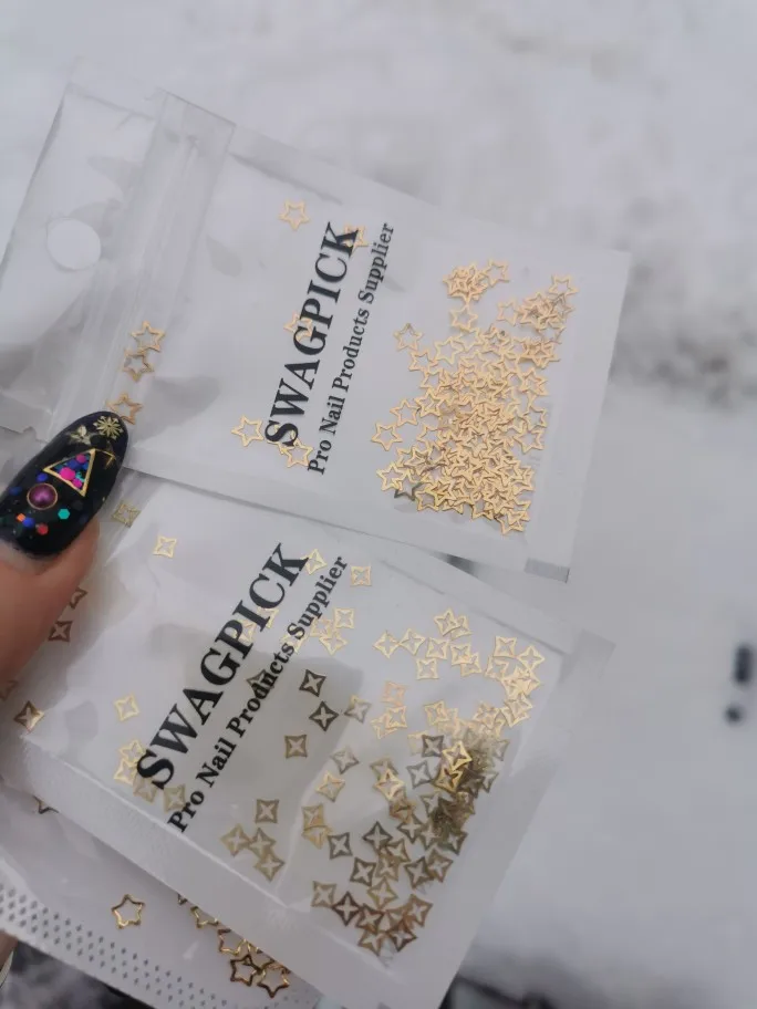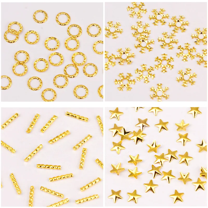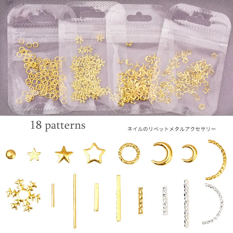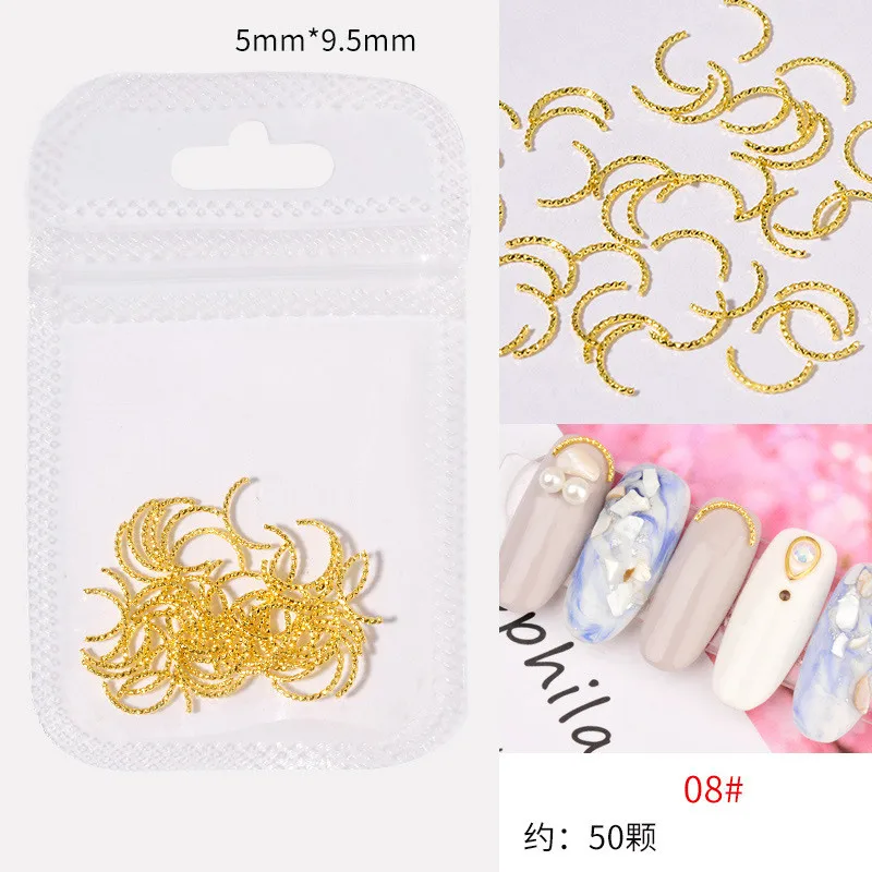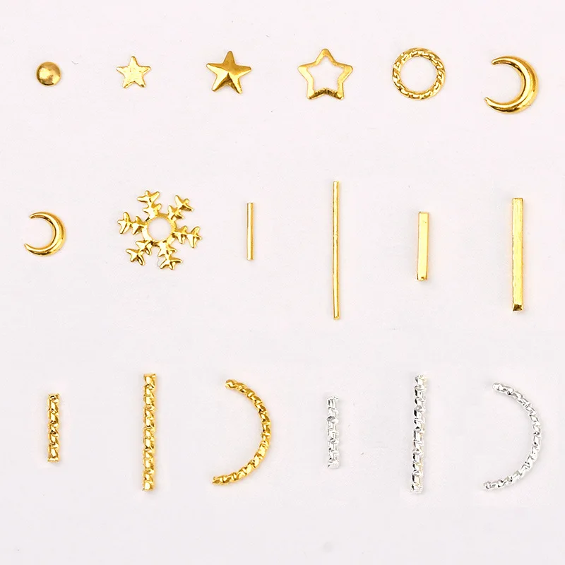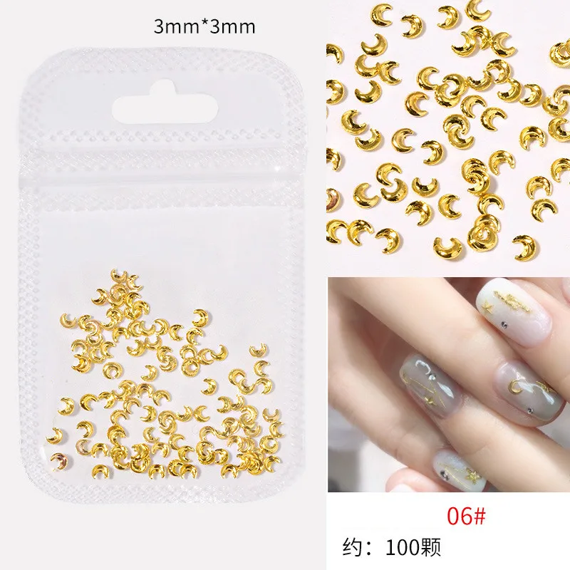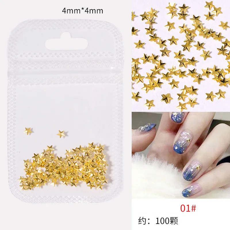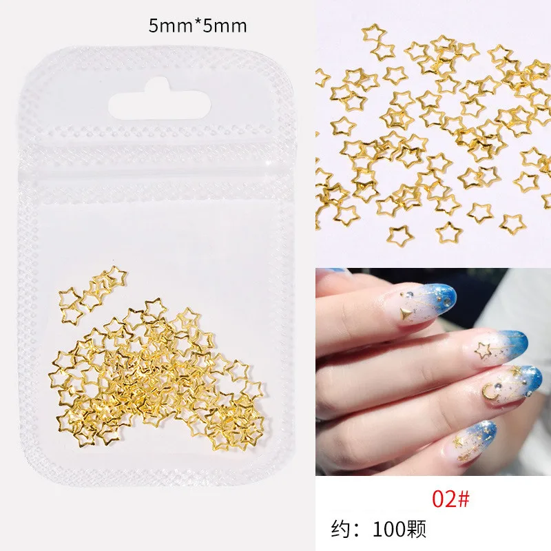 1 сумка В переменного тока, 50-100 шт. золотого и серебряного цвета ногтей шпильки для ногтей Запчасти украшение звезды круг Луна ногтей маникюрный салон