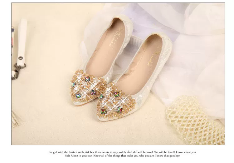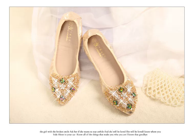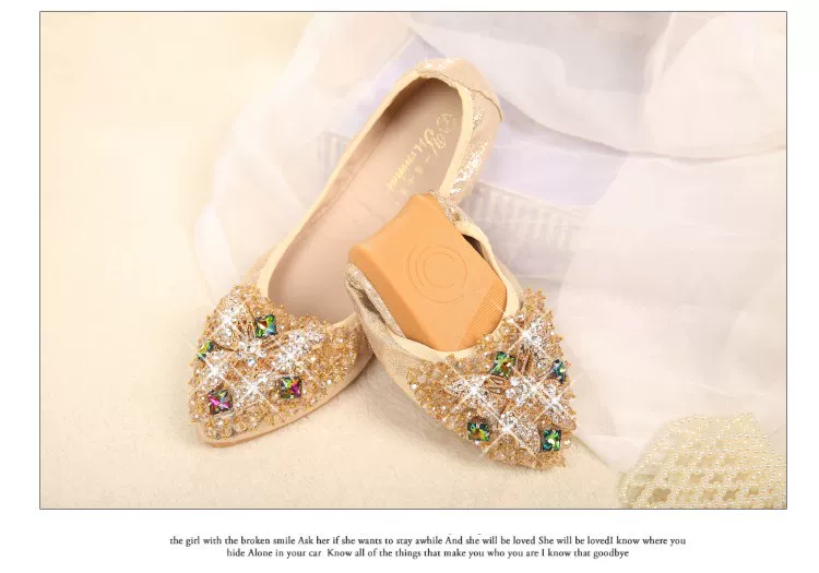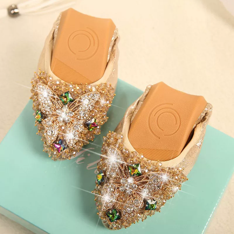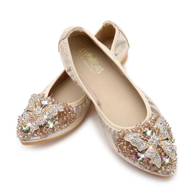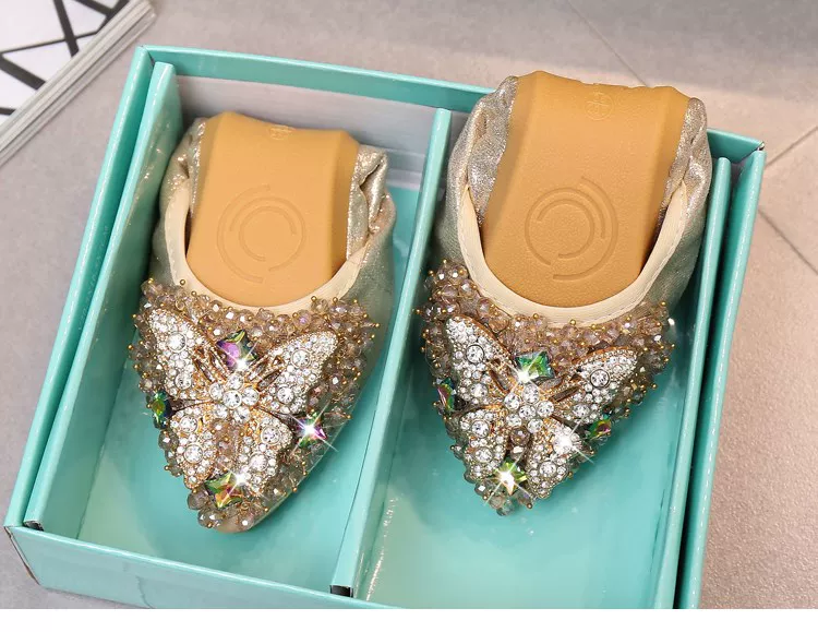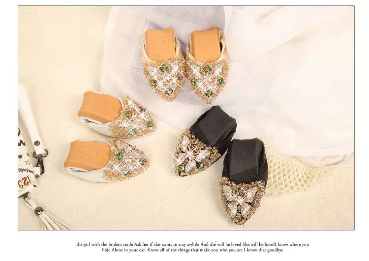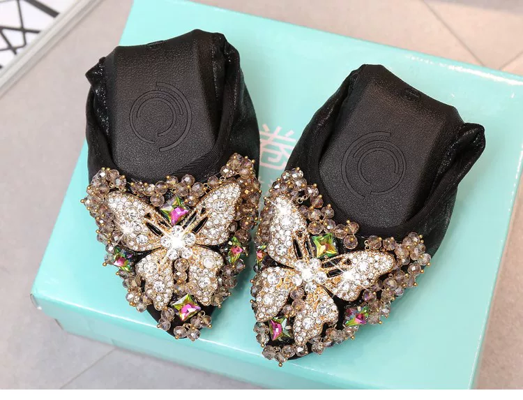 Туфли женские складные, балетки, заостренный носок, со стразами, без застежки, лоферы, повседневная обувь, модель весна-лето