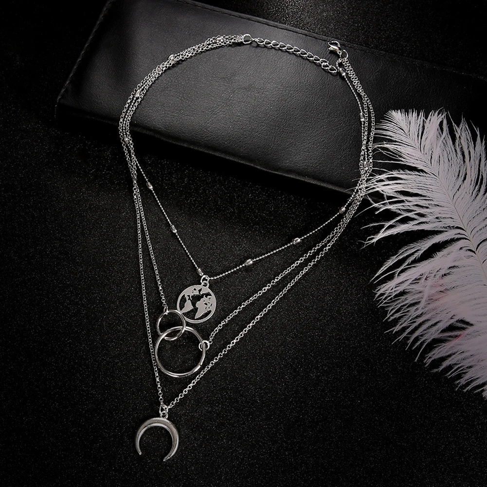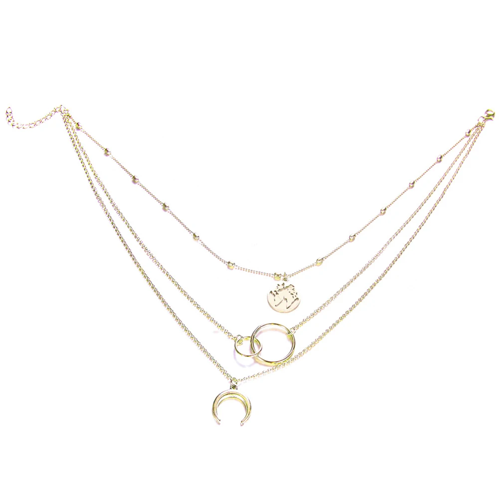 Ожерелье многослойное золотистое с подвеской в виде месяца, карты мира