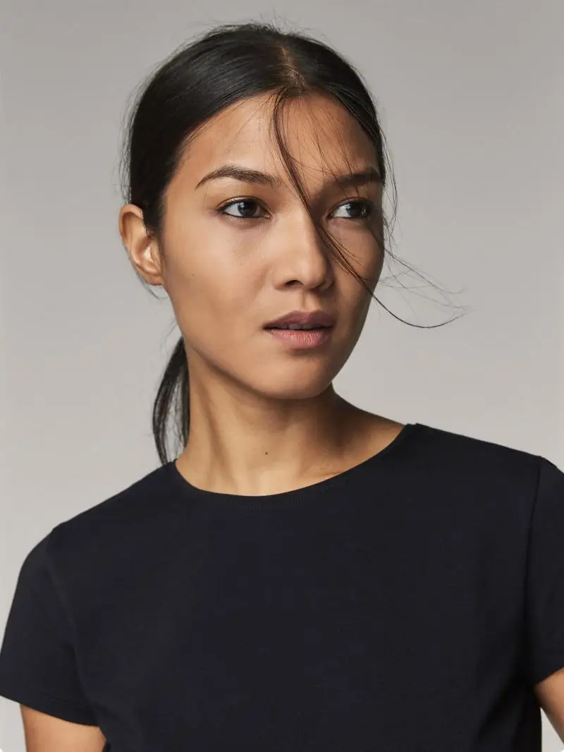 Футболка огонь. Заказал размер L,чтобы не была в облипку. Сидит классно,цвет красивый,но на фото видны белые вкрапления,в жизни их не видел. База будет сочетаться со всем(джинсы,юбки,шорты и тд). Берите,не пожалеете.