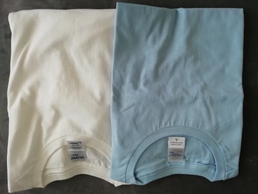 майки отличного качества, 100% котон. заказала белую и голубую. доставлено очень быстро вместе с другими посылками, за это спасибо!