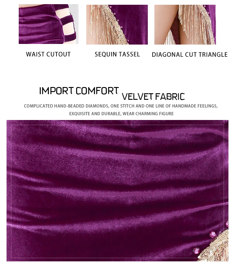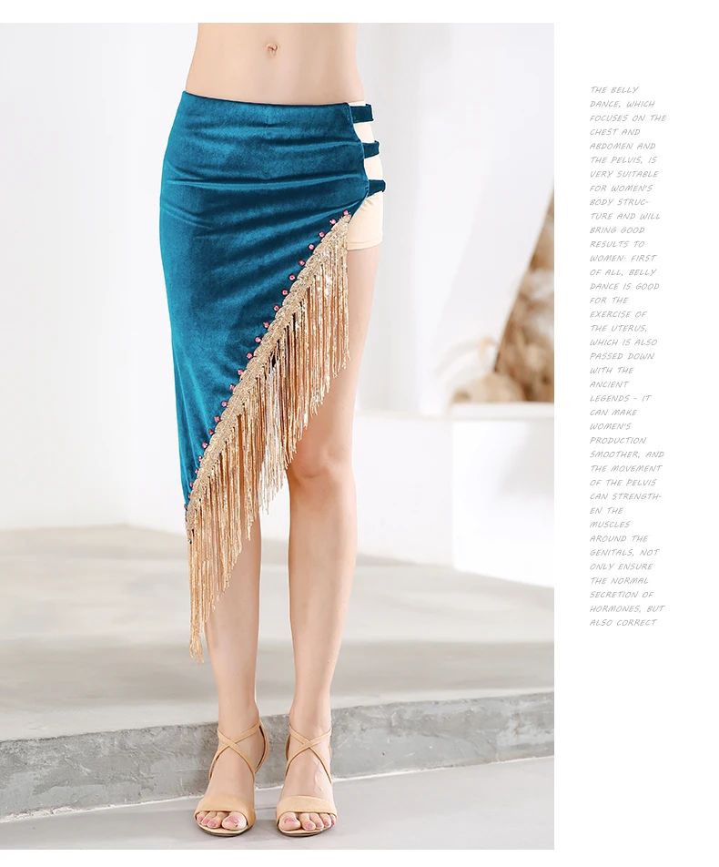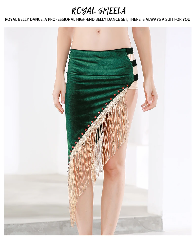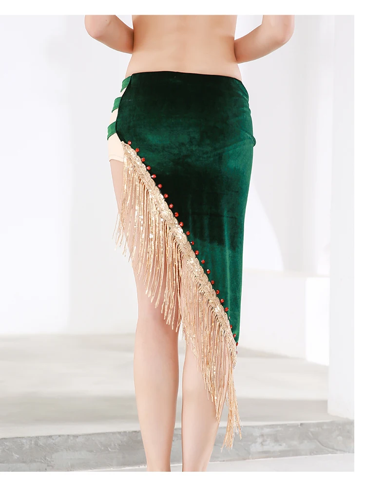 Женский бархатный костюм для танца живота, танцевальный набедренный платок с бахромой и треугольным шарфом