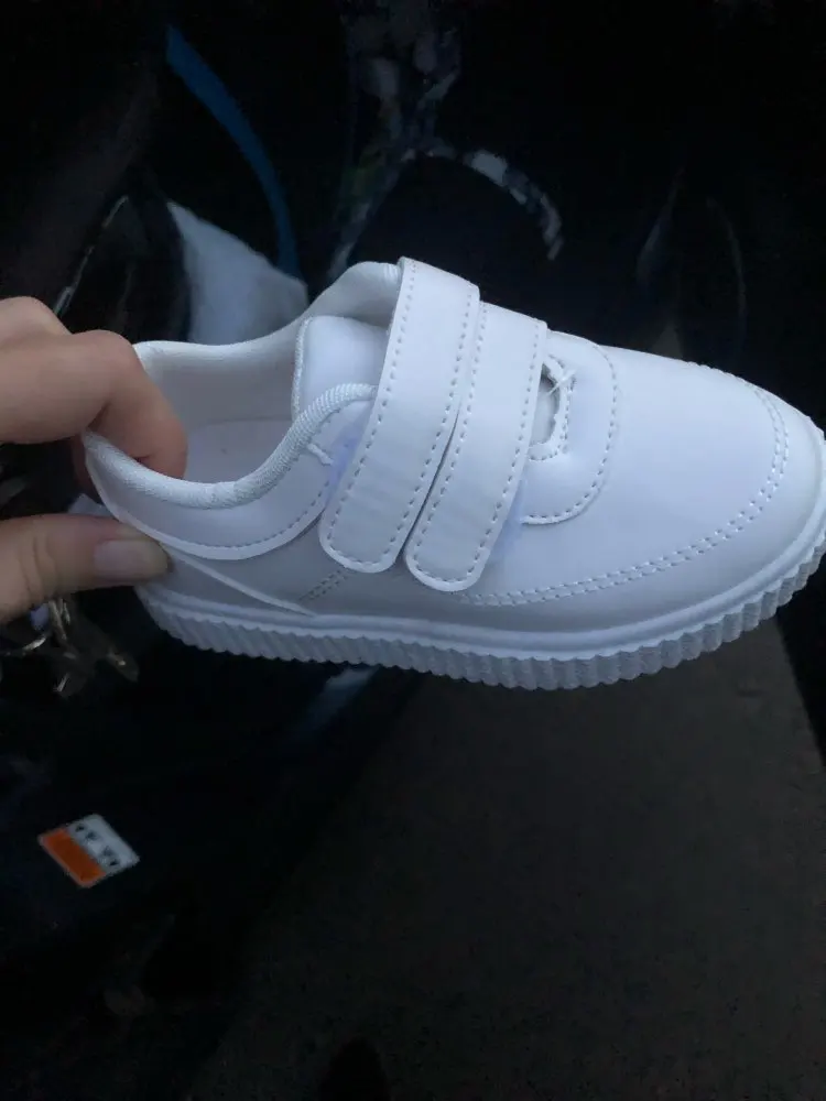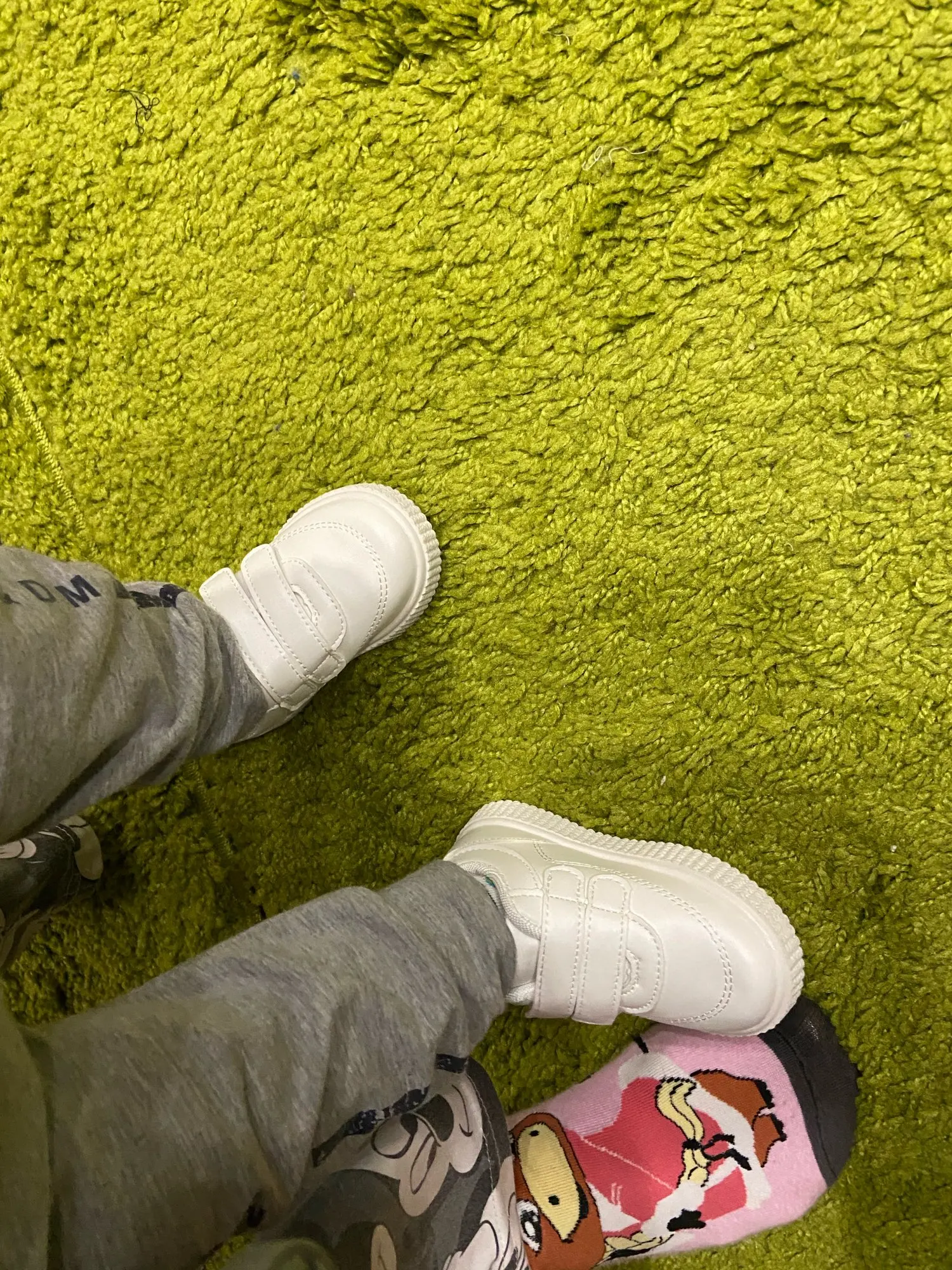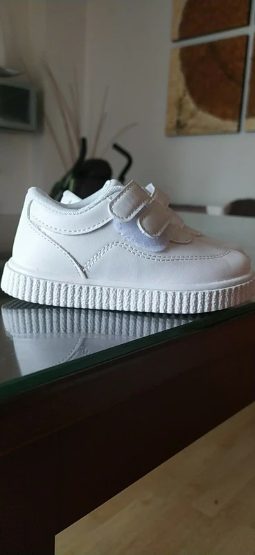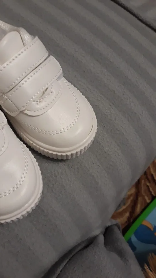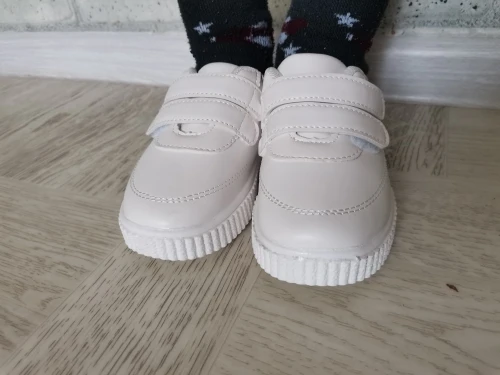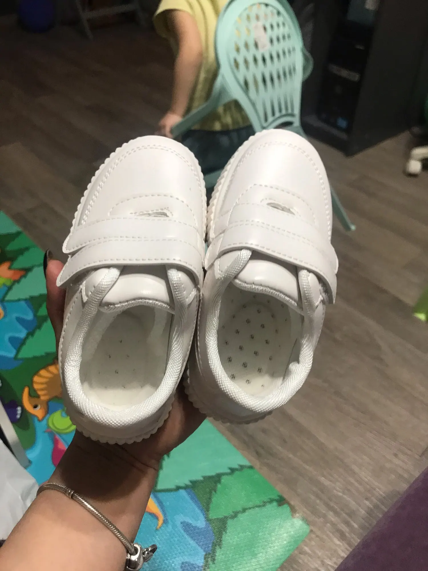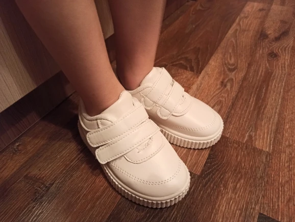 Симпатичные кроссовки. В Саратов доставка 16 дней. Цвет чисто белый. Выполнены нормально за эти деньги. Стелька вполне устроила. Она идёт даже с небольшим подобием супинатора. Если достать вторую стельку картонную увидим все нутро кроссовок на ниточках мягкие, удобные, ребёнок сразу одел и не хотел снимать. Пока опробовали только дома. Плюс, подошва не скользит. Немного неудобно ребёнку надевать из - за того, что вылезает язычок полностью и его надо заправлять обратно. Липучки держат хорошо. Единственное писала продавцу по поводу размера стельки. Он написал, что длина стельки 18 см. По факту 29 размер стелька 17.3 где-то. На ножку 16.5 запас есть. Надеюсь хватит на весну. А так симпатичные и убить не жалко..