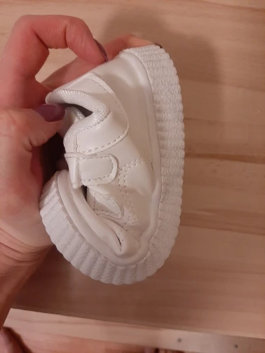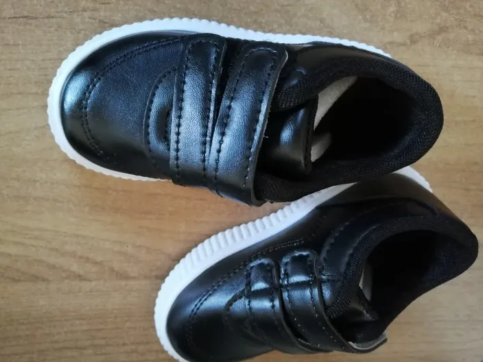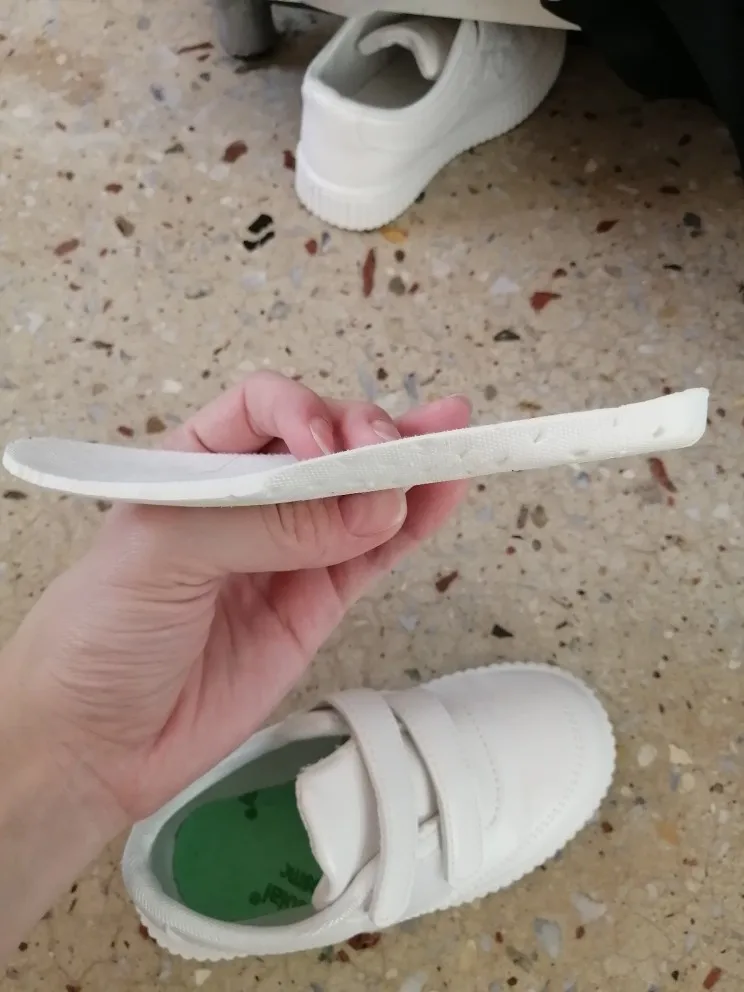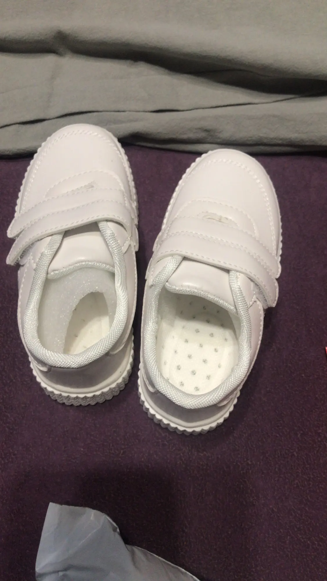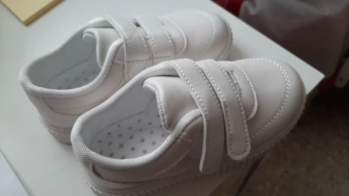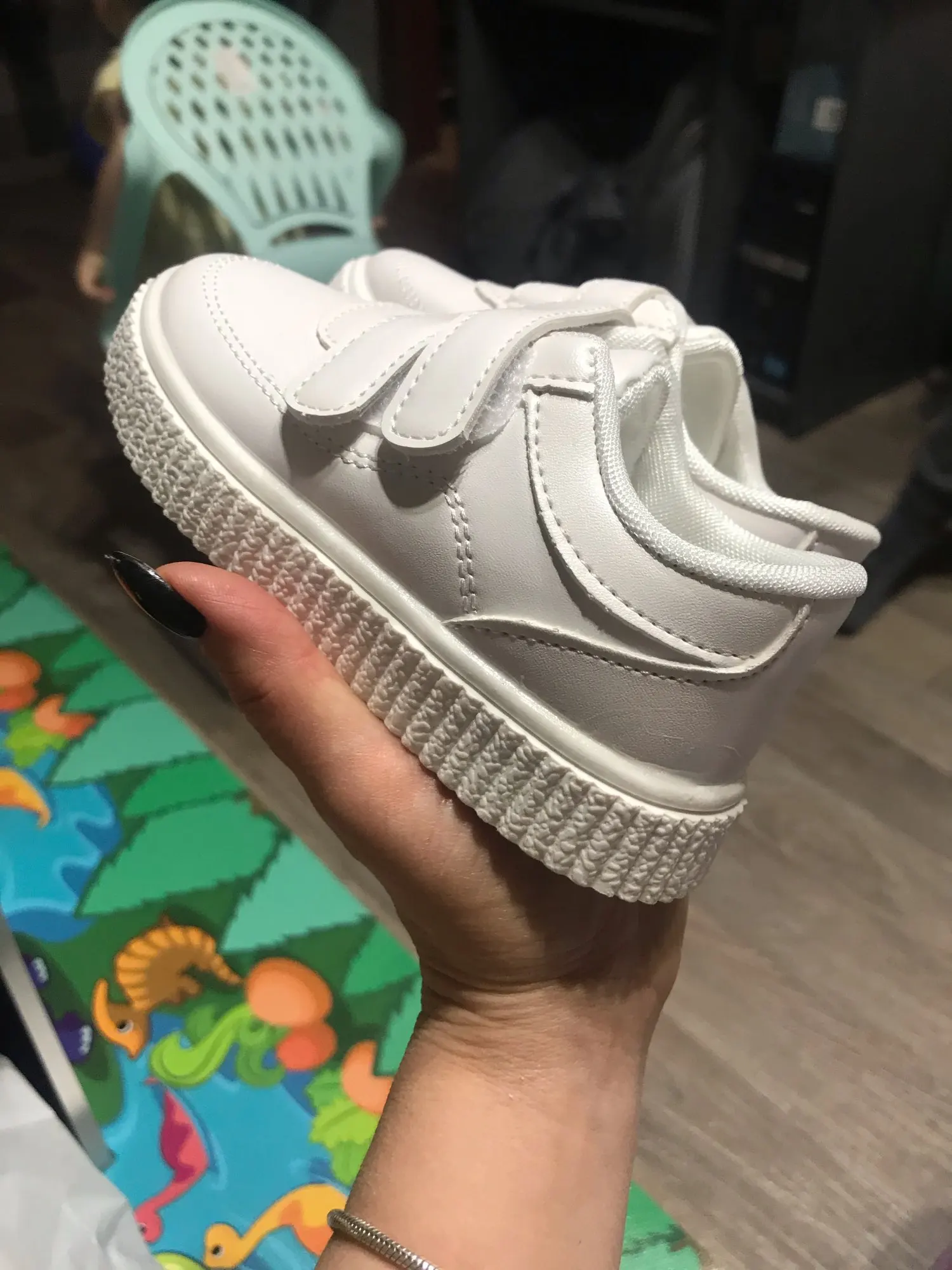 Симпатичные кроссовки. В Саратов доставка 16 дней. Цвет чисто белый. Выполнены нормально за эти деньги. Стелька вполне устроила. Она идёт даже с небольшим подобием супинатора. Если достать вторую стельку картонную увидим все нутро кроссовок на ниточках мягкие, удобные, ребёнок сразу одел и не хотел снимать. Пока опробовали только дома. Плюс, подошва не скользит. Немного неудобно ребёнку надевать из - за того, что вылезает язычок полностью и его надо заправлять обратно. Липучки держат хорошо. Единственное писала продавцу по поводу размера стельки. Он написал, что длина стельки 18 см. По факту 29 размер стелька 17.3 где-то. На ножку 16.5 запас есть. Надеюсь хватит на весну. А так симпатичные и убить не жалко..