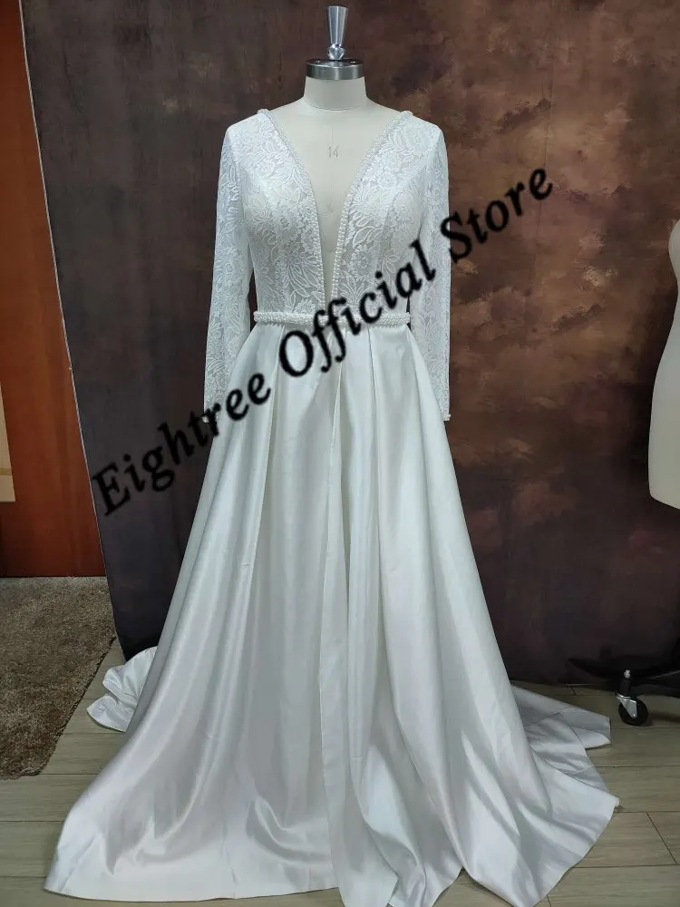 Свадебное платье с длинными рукавами; Элегантное платье принцессы с v-образным вырезом; Свадебное платье на заказ