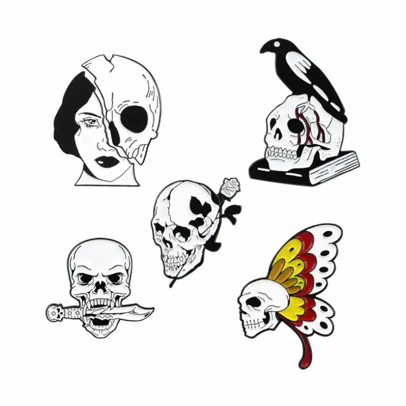 Эмалированная брошь в виде черепа, скелета, лица, бабочки, цветов