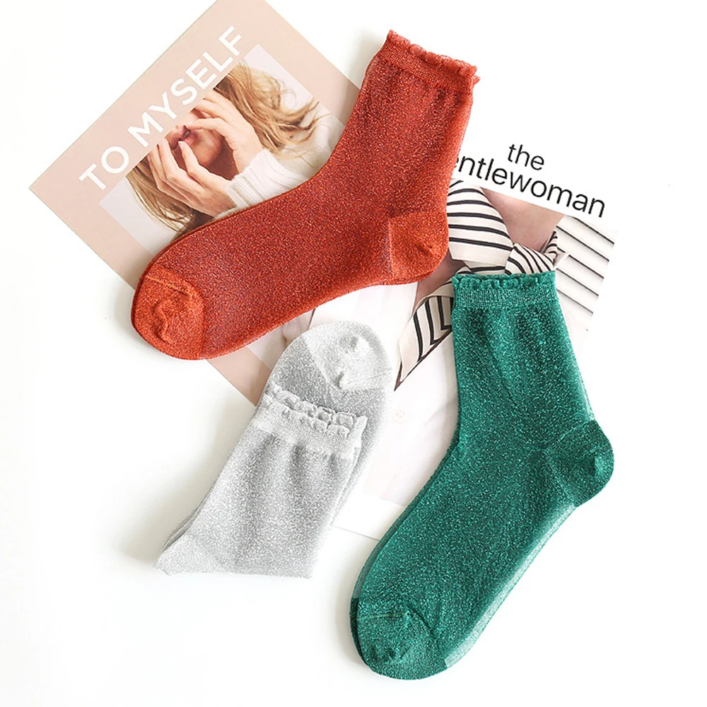 Женские модные блестящие носки на лодыжках для девушек на весну и лето тонкие прозрачные женские мягкие удобные носки