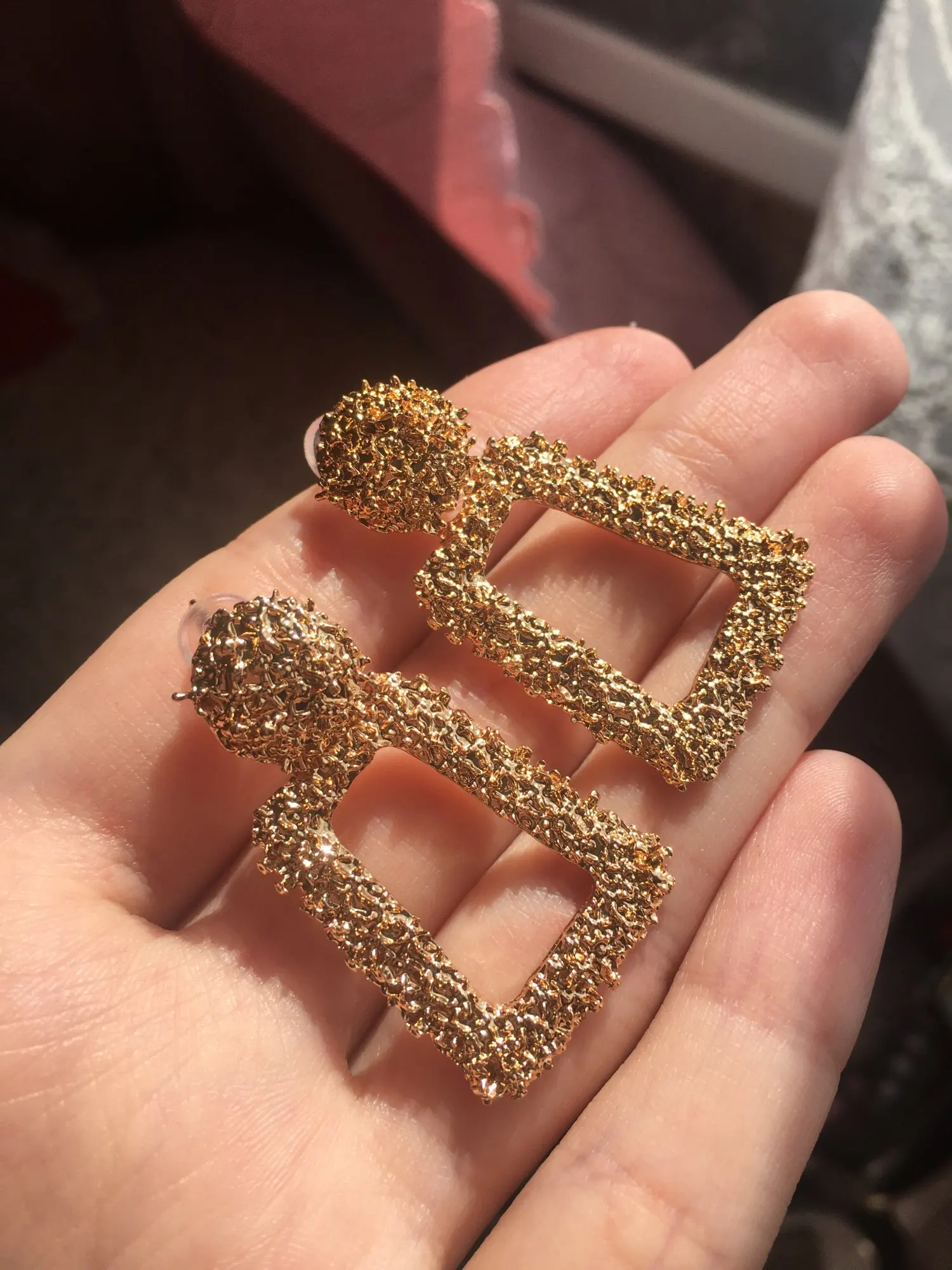 Женские винтажные серьги, массивные геометрические золотистые металлические серьги с подвеской, 2019