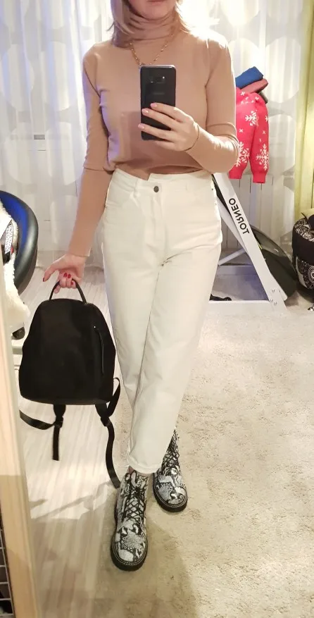 Мне очень понравились джинсы! Размер М подошёл на параметры 86-67-97см, рост 165см. Боялась, что будут малы, но нет, очень комфортно в них. Талия завышена и в талии мне даже немного свободны, есть запас сантиметра 4. Жалко, что уже нет размера М в других цветах, очень хотела белые. Доставка в Санкт-Петербург была примерно дней 18.
