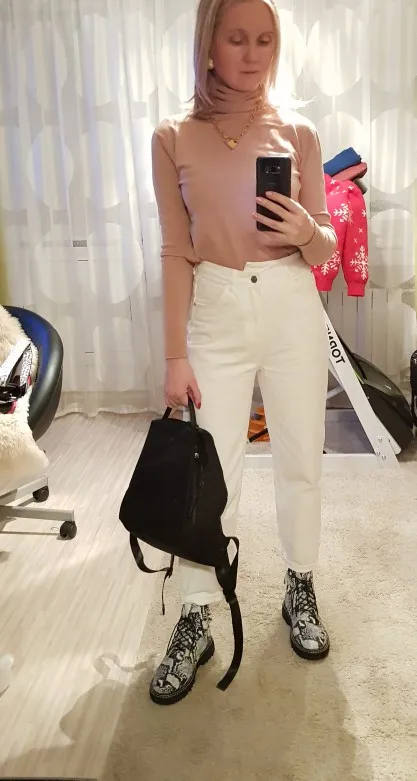 Джинсы понравились.На параметры 73-98 сели хорошо но как то оверсайз вот померить бы М то те мне кажется были бы по фигуре,все таки оставила ходить зимой под тёплые колготки но весной в талии ушью.Зато хорошо свитера можно заправлять.Смотрятся хорошо.Запаха нет.Пришли быстро.Качество как всегда на высоте.