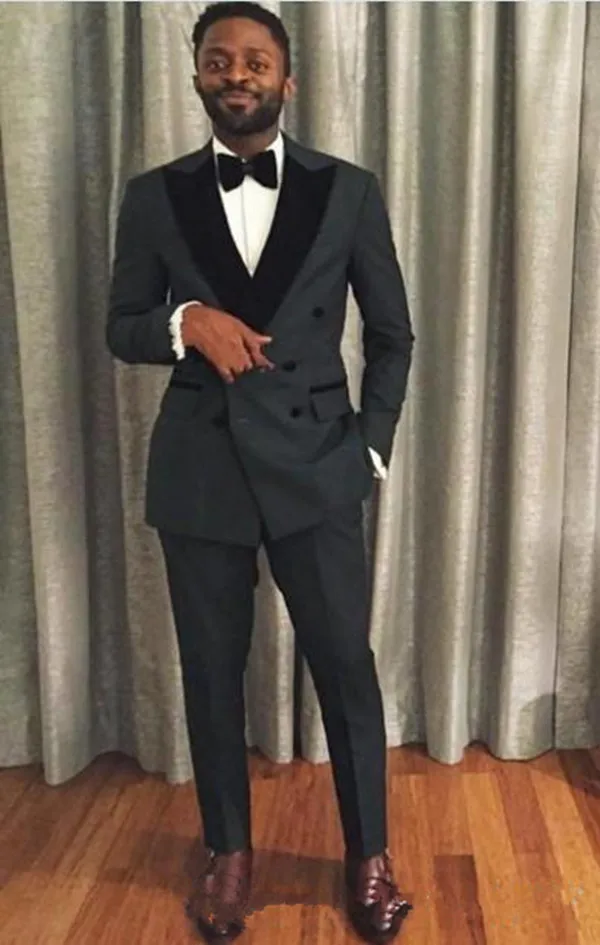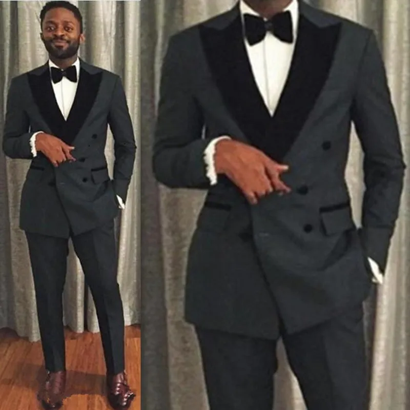 Смокинг мужской двубортный с лацканами, пиковая одежда для жениха, свадебный пиджак для выпускного вечера, блейзер (пиджак + брюки), черный цвет, 2 предмета