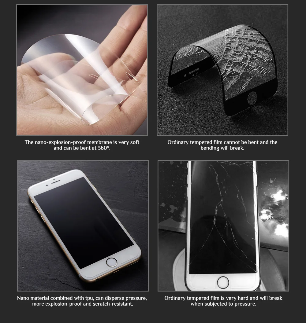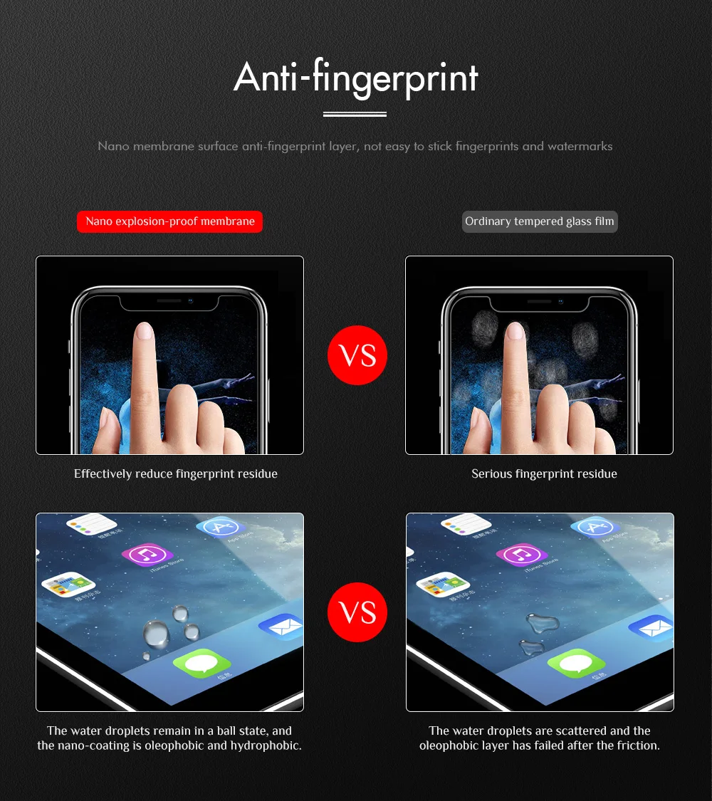 Название продукта нано Взрывозащищенная ТПУ мягкая пленка Полная защита Экран покрытия Толщина 0,25 мм, ультратонкий Материал Высокое качество ТПУ Цвет Clear Прозрачность прозрачная HD защитная пленка Твердость 5 ~ 6 H, устойчивость к царапинам Особенности 1. взрывозащищенный и устойчивый к царапинам, изготовлен из нано-взрывозащищенного мягкого материала 2. Защита от отпечатков пальцев, технология защиты от отпечатков пальцев, гидрофобный и олеофобный. 3. Его можно починить для небольшой царапины на поверхности. 4,100% прилипания к экрану, попрощайтесь с белой каймой. Это лучший выбор для изогнутого экрана, а не для закаленного стекла. 5. Он может быть установлен легко и без пузырьков с простым шагом установки.