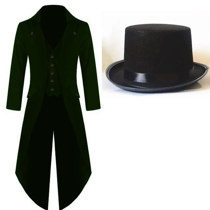 Мужской костюм в стиле стимпанк размера плюс, 5XL, винтажное пальто в готическом стиле с волшебной шляпой, пиджак-фрак