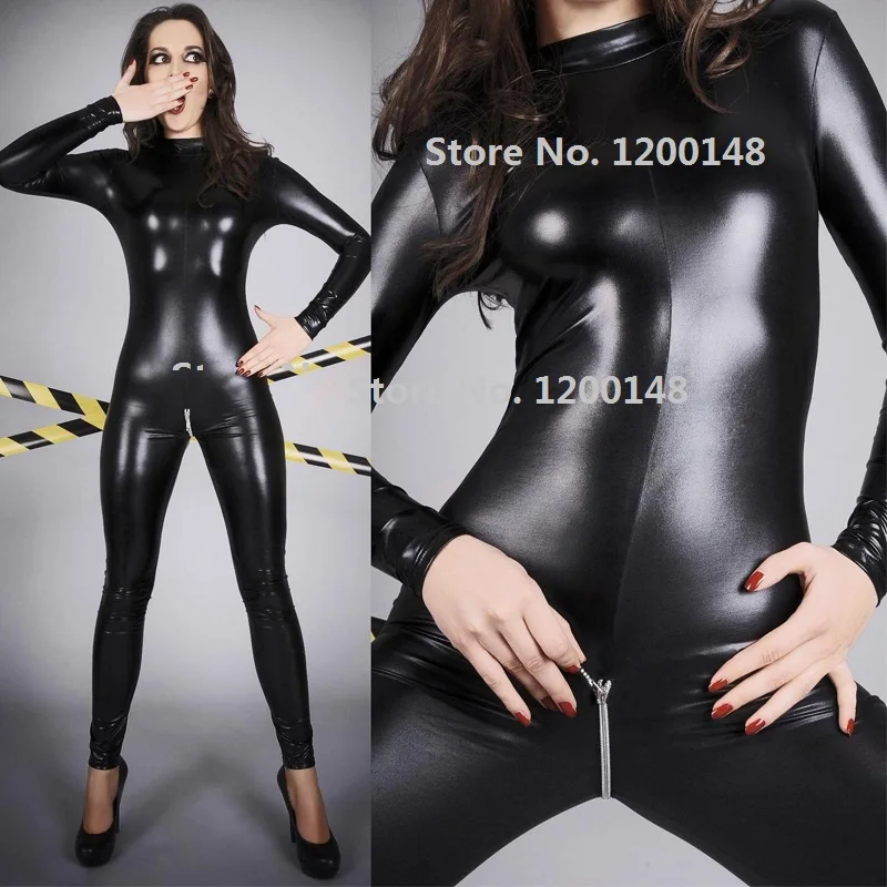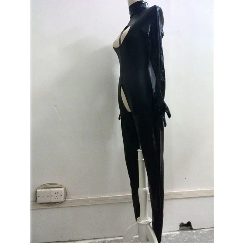 Сексуальный комбинезон кошки из ПВХ латекса женский черный мокрый б...