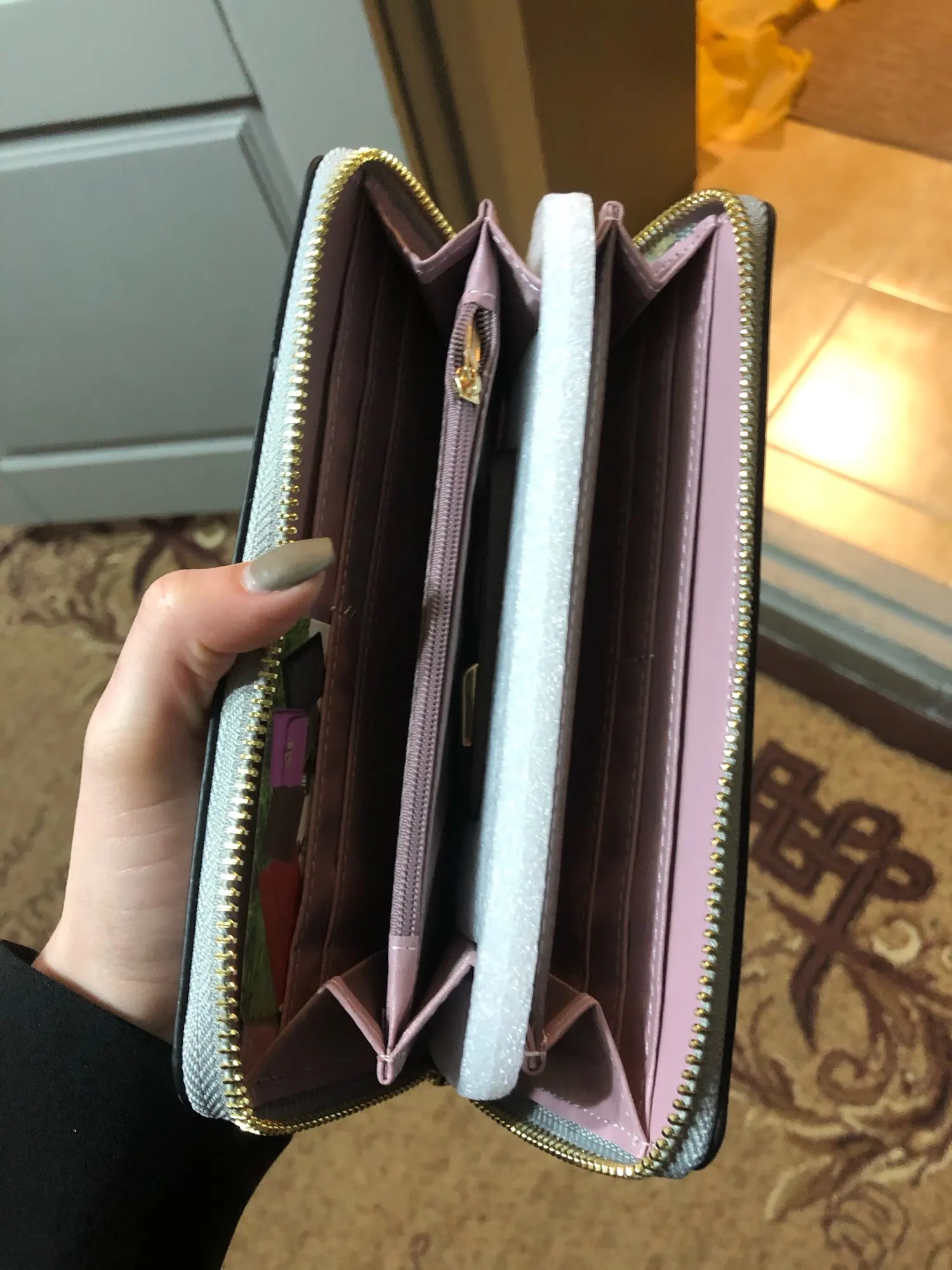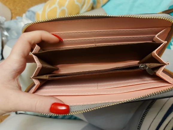 Очень красивый кошелек, сделанный в розовом цвете, прибыл через дюжину дней. Это продукт, который я рекомендую, потому что нет дефекта. Красивая отделка