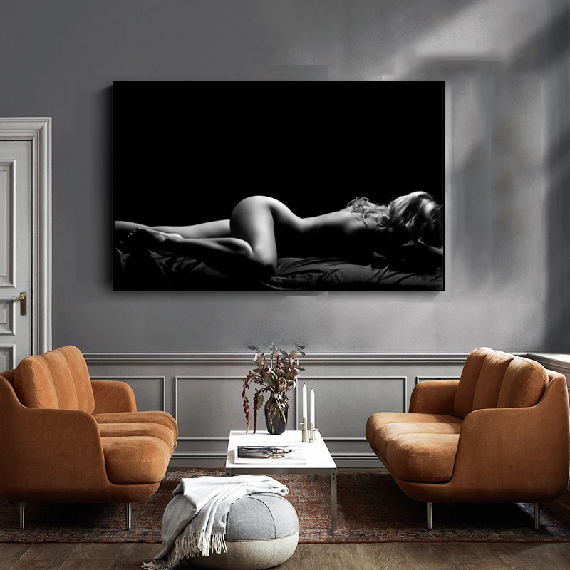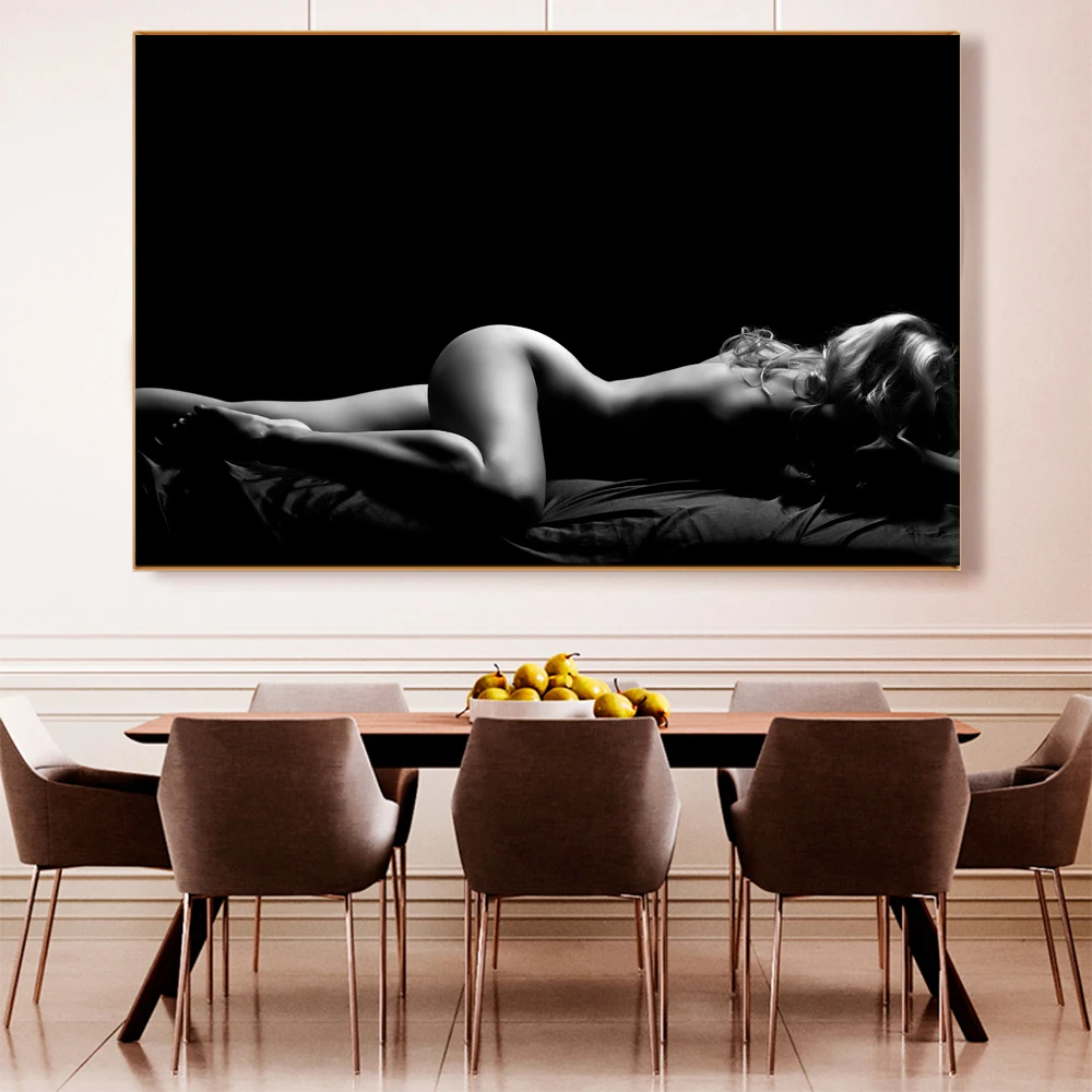 Настенная живопись, черная Современная Картина на холсте с портретный плакат принтами, сексуальное тело, обнаженные женские картины для гостиной, домашний декор без рамки