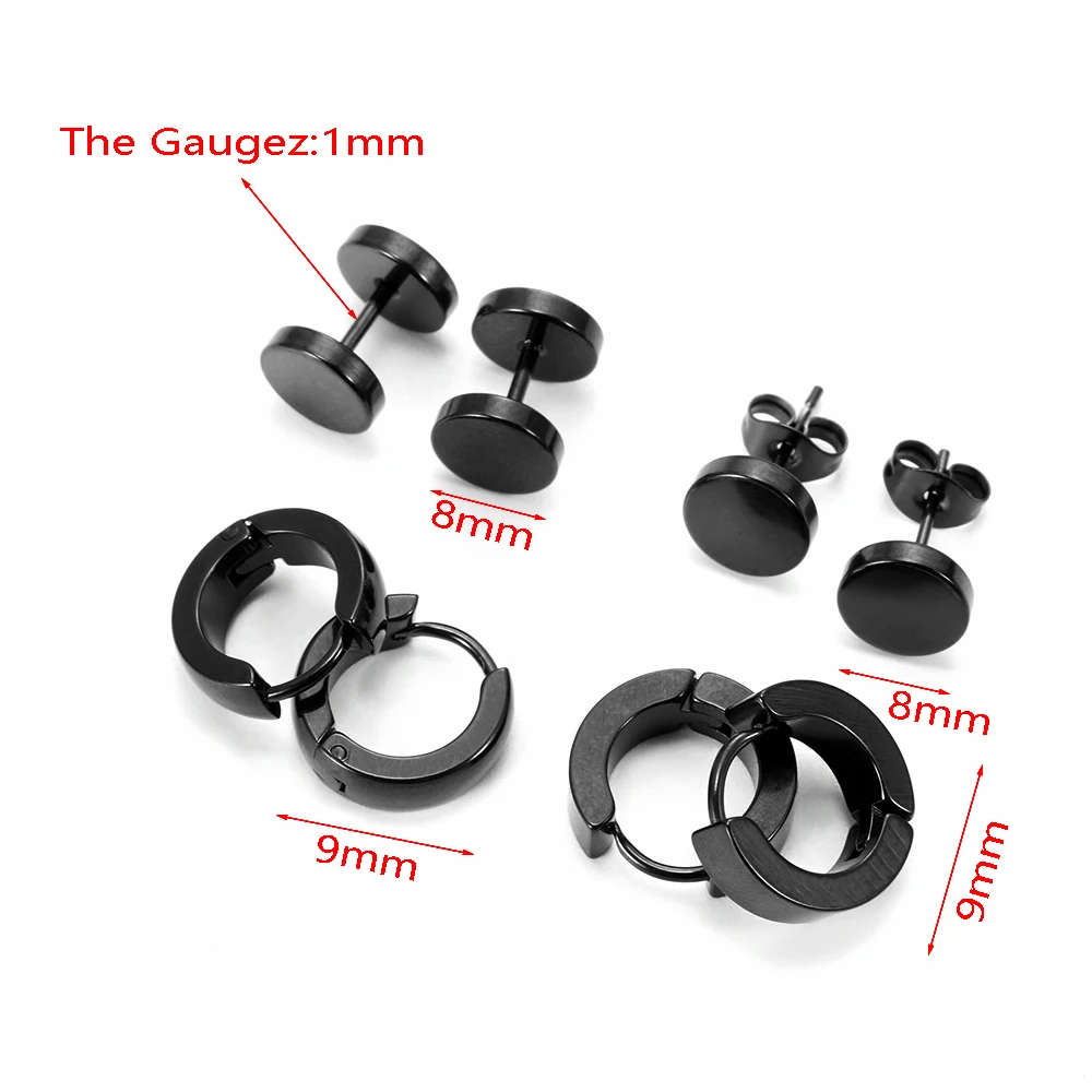 Серьги для пирсинга унисекс из нержавеющей стали, в стиле панк, Готическая штанга для пирсинга, черного цвета, 1 комплект, 4 пары