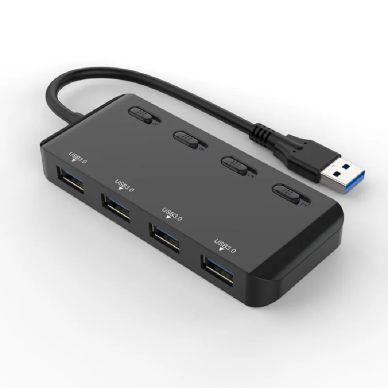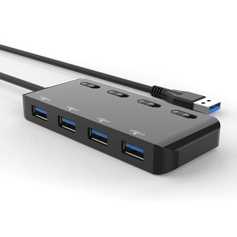 Tebe Концентратор USB 3.0 4-портовый Multi USB 3.0 высокоскоростной разветвитель концентратора с переключателем включения выключения светодиодный индикатор Кабель расширения для портативного ПК