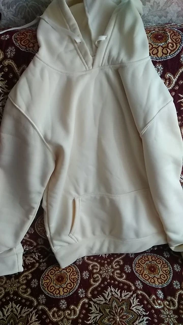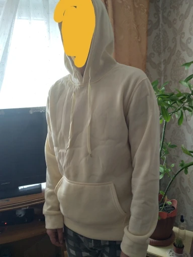 снова купила толстовку, до этого была желтая, но теперь уже черная кажется, что она даже плотнее и теплее чем жёлтая, но не могу утверждать взяла xl на мой родной s, выглядит как мешок и очень нравится рост около 175±, закрывает как минимум запястья и половину ладони капюшон так же довольно большой не линяет и цвет сохранил ниток не увидела