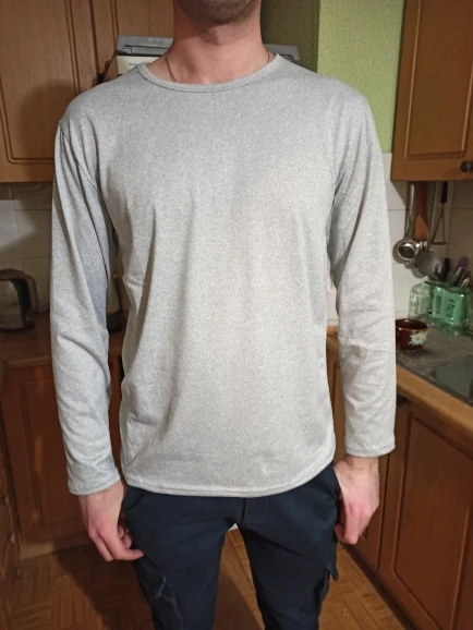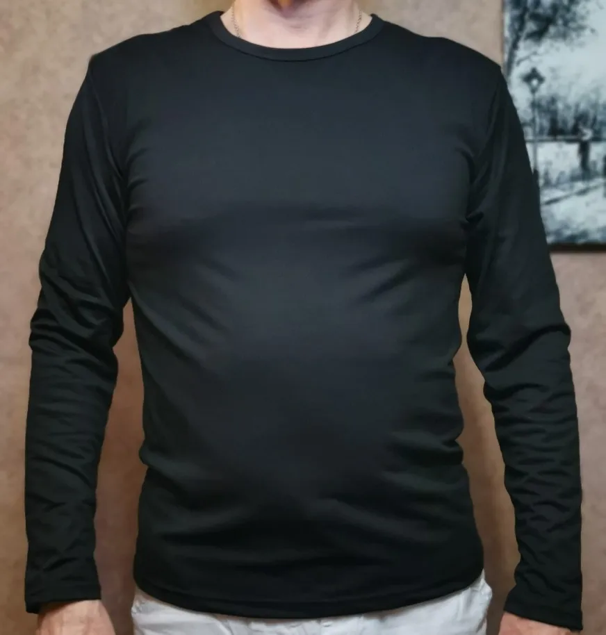 Такая обтягивающая футболка с длинным рукавом, очень приятный материал). На упитанного мужчину с пузиком, как я) надо брать побольше размером, на худышку самое то. Сойдёт как термобелье, одеть под что нибудь. Доставка офигенная, быстро привезли. Советую продавца