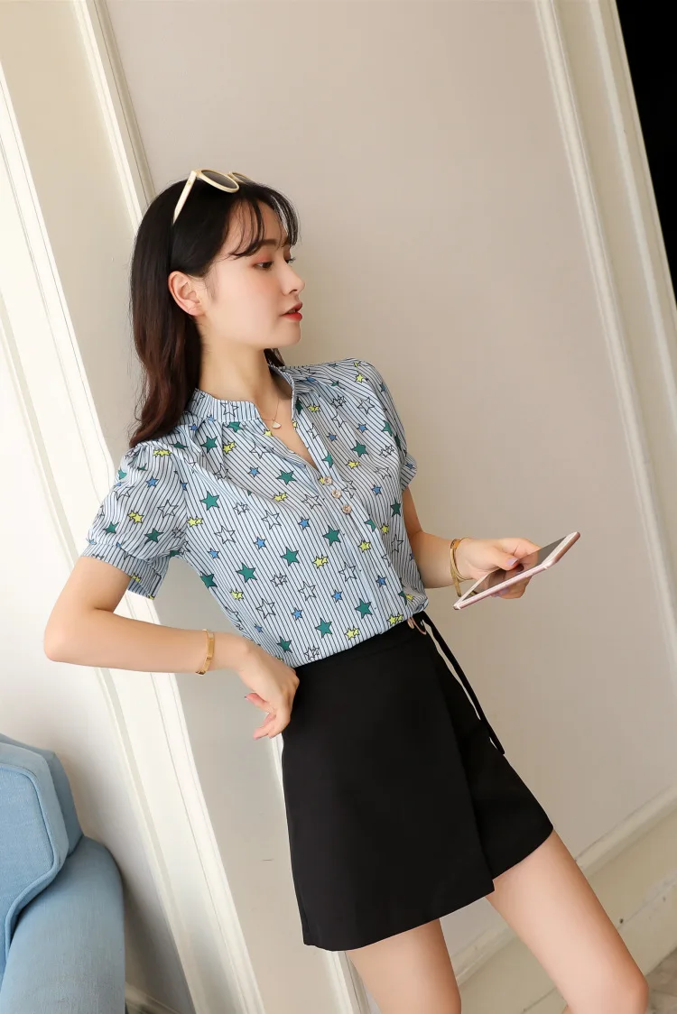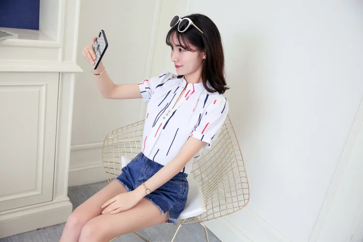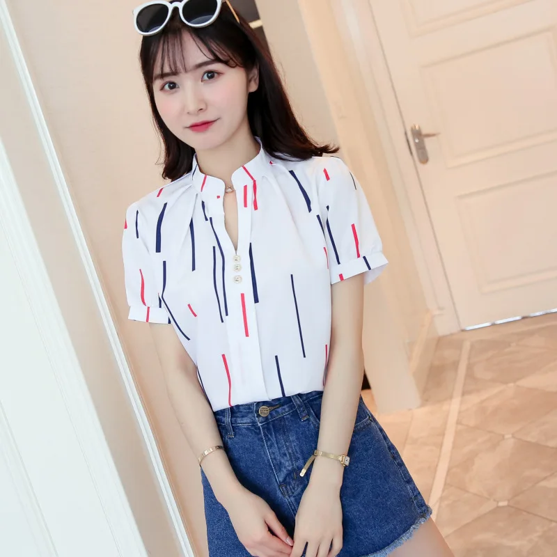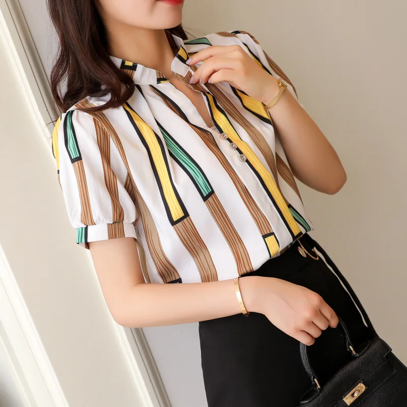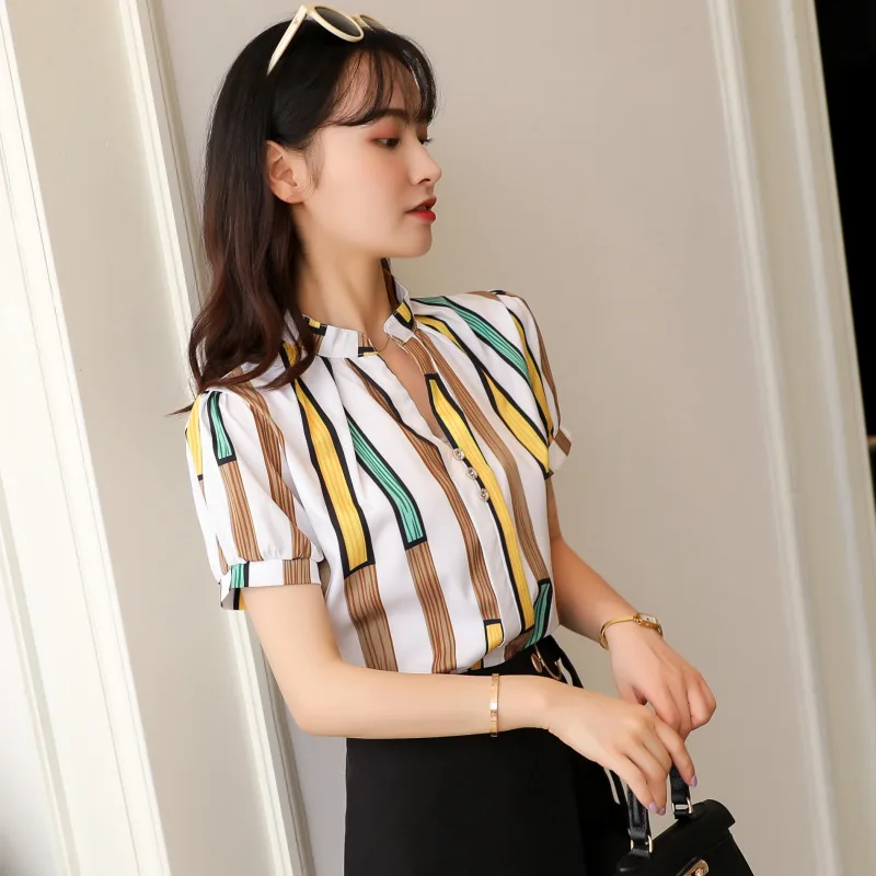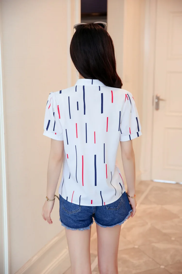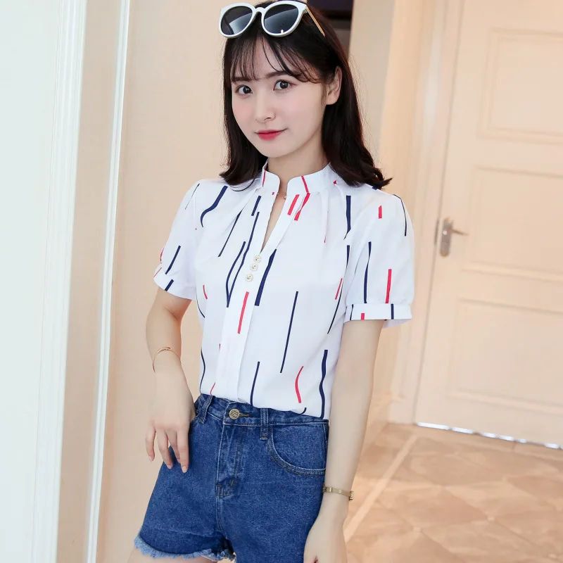 Блузка женская шифоновая в Корейском стиле, модная офисная рубашка, элегантный топ, белый цвет, на лето