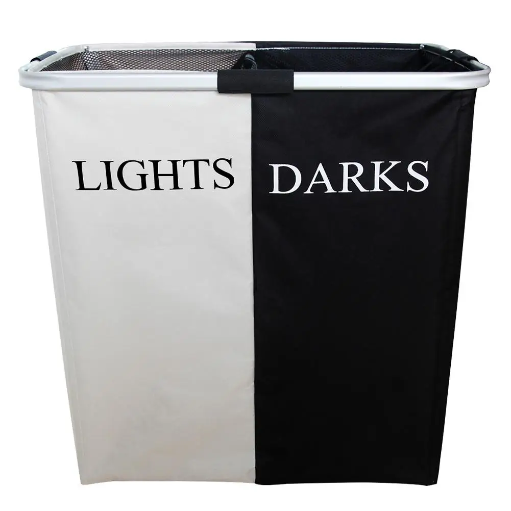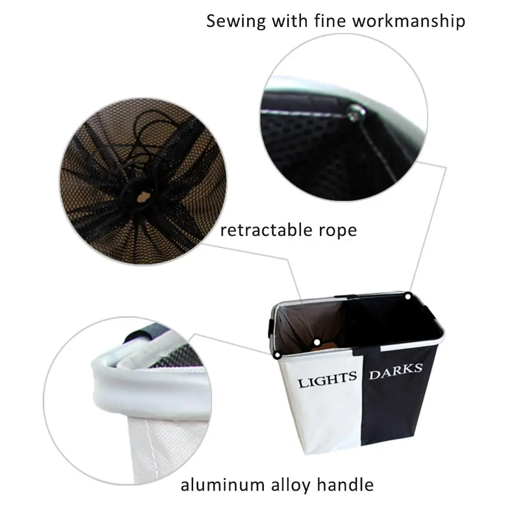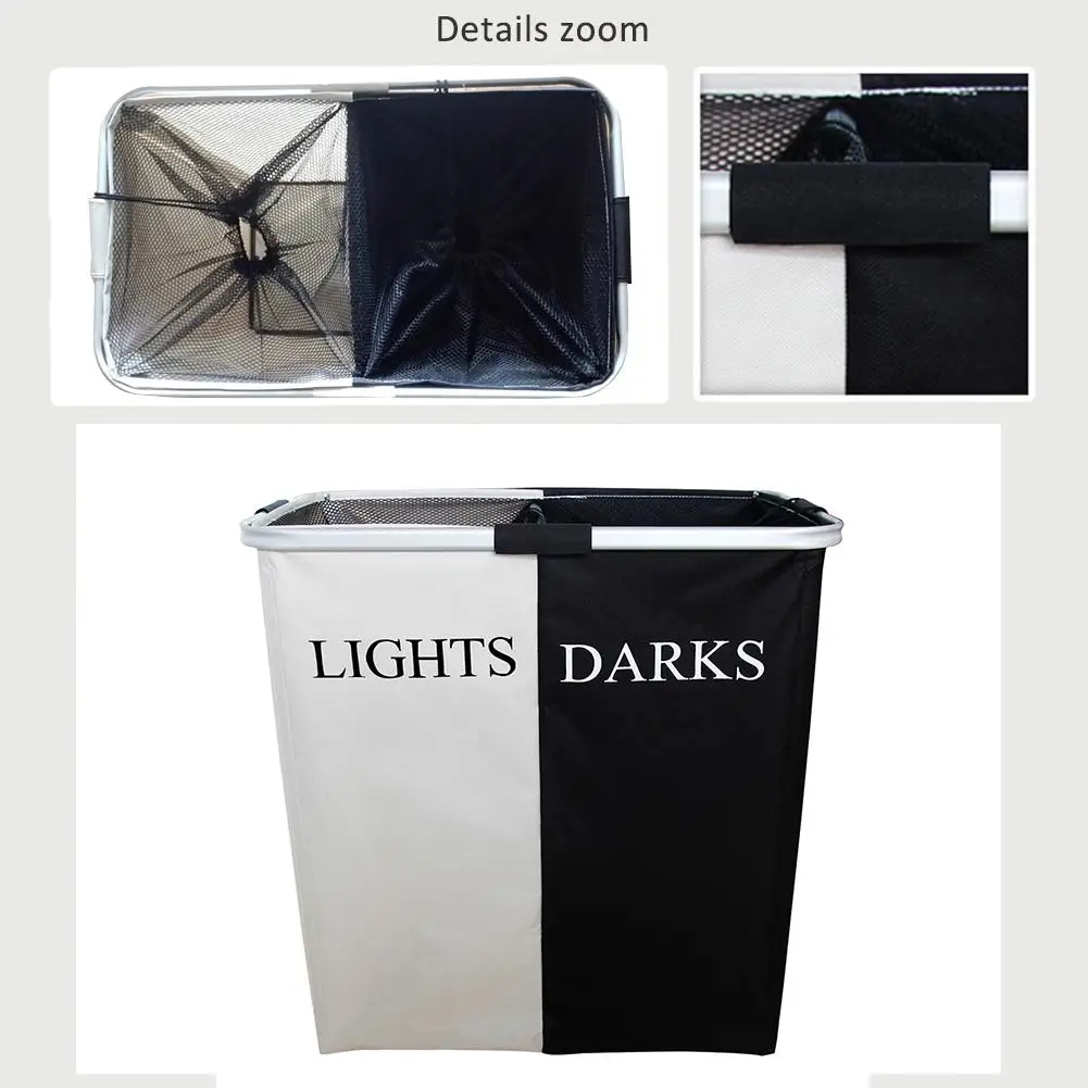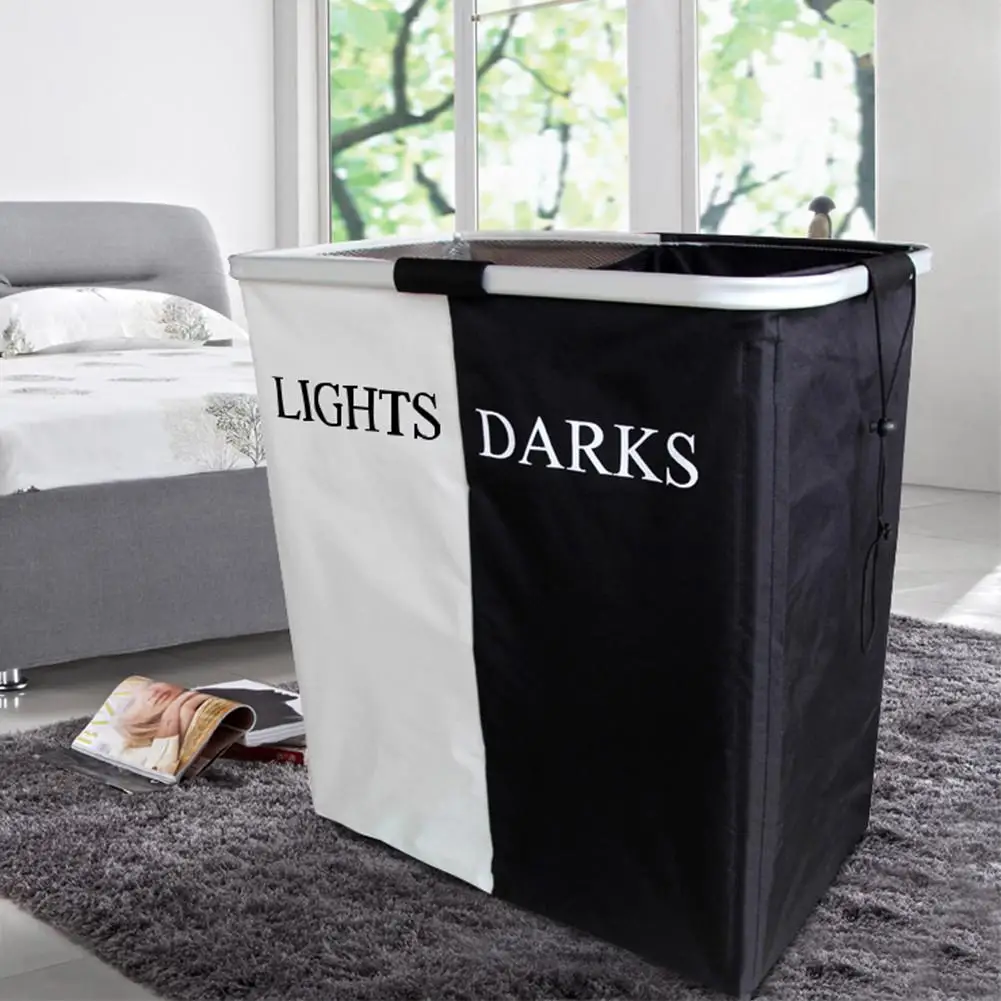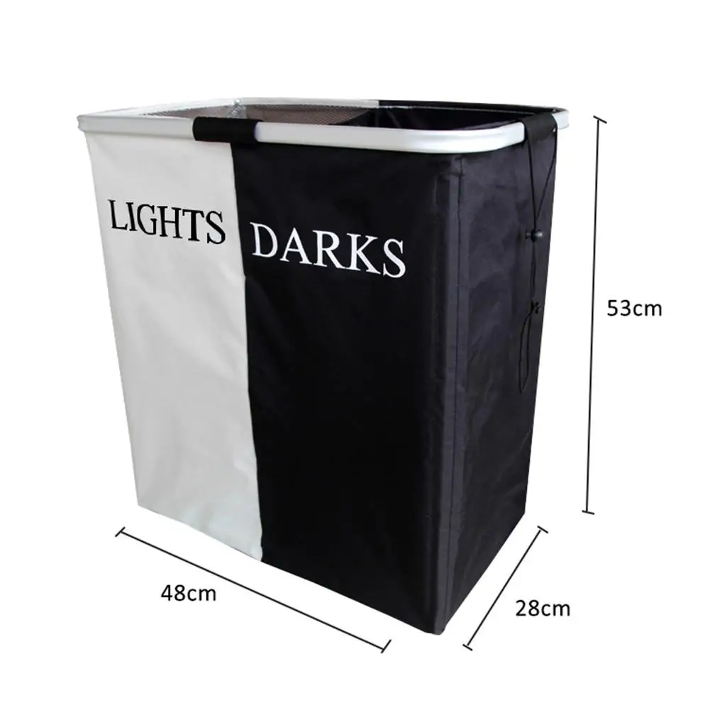 Средне-Размер затрудняетесь в выборе правильного размера Двойной отделения Черный и белый бельем для грязной одежды складной алюминиевый легкий корзина для хранения O