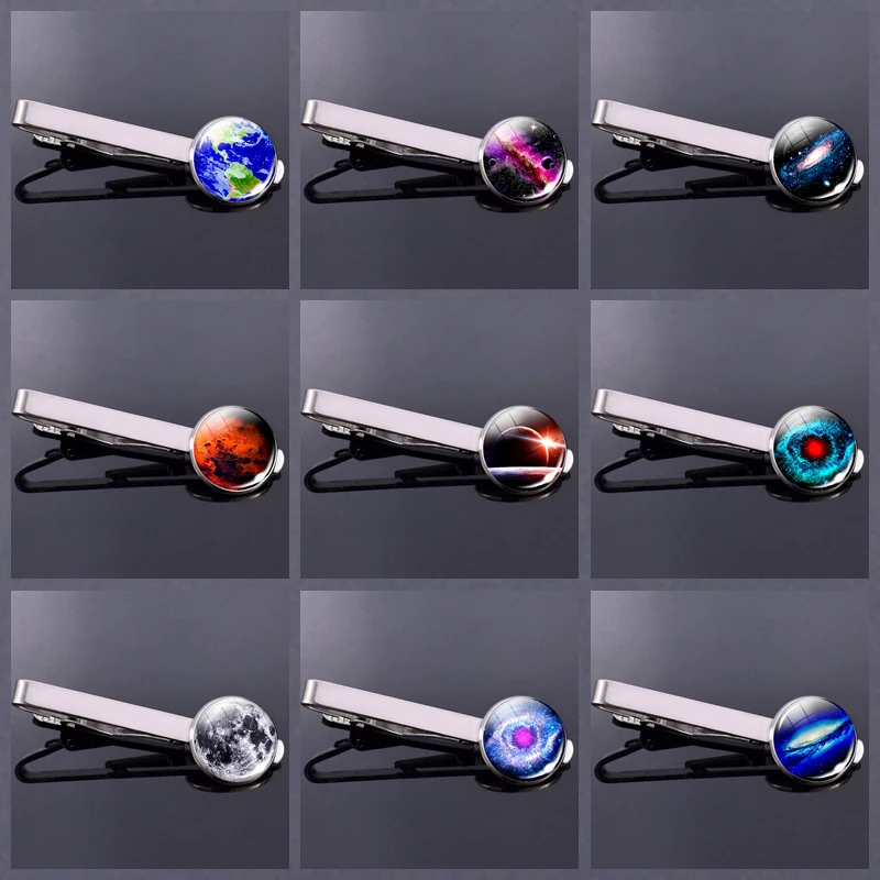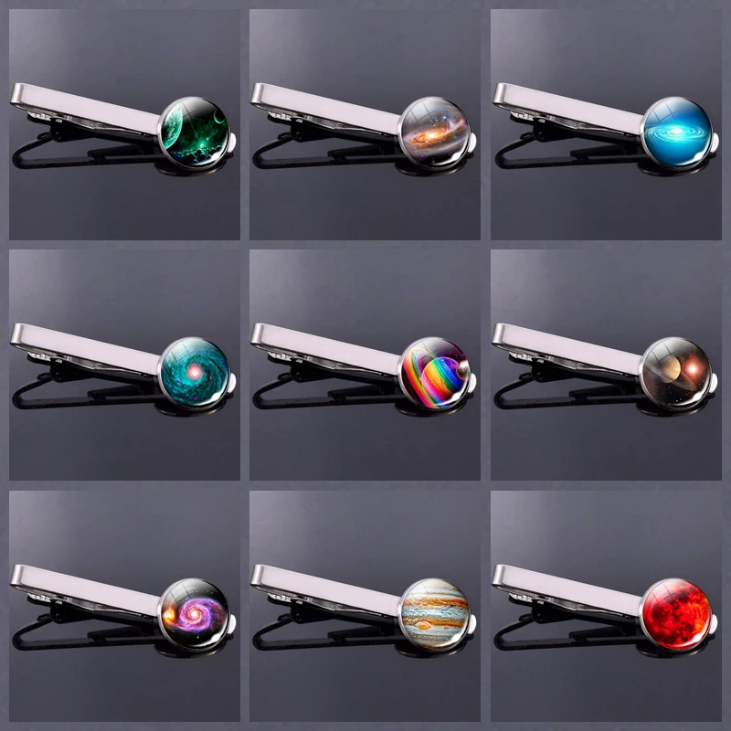 Зажим для галстука Galaxy, металлические зажимы для галстука, мужской галстук, зажим для галстука с планетами, солнцем, землей, луной, Марсом, Юпитером, Туманностью