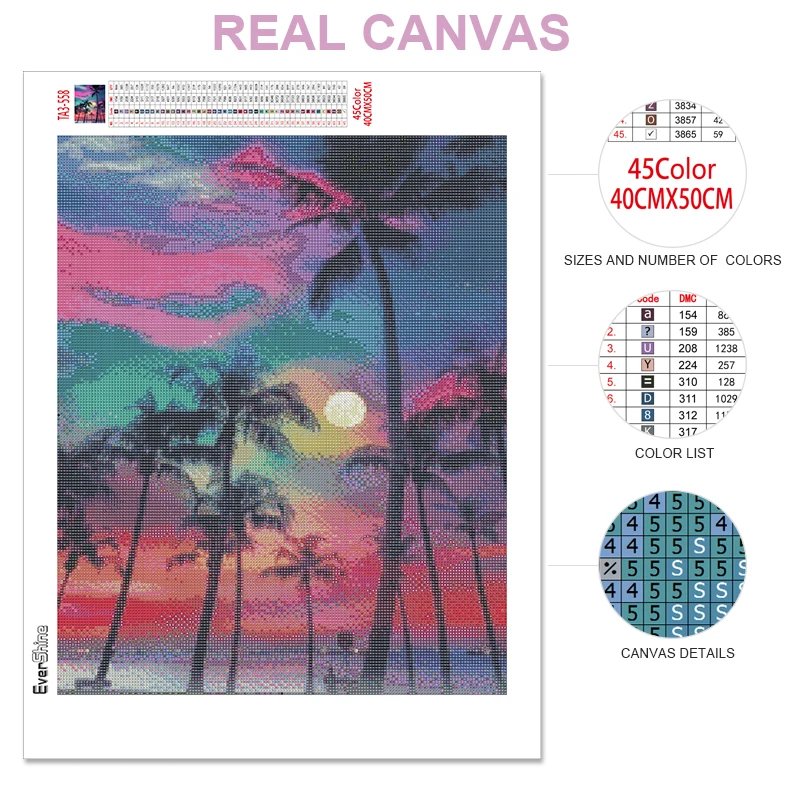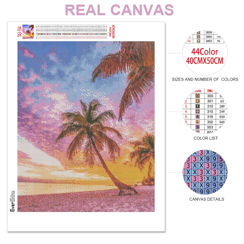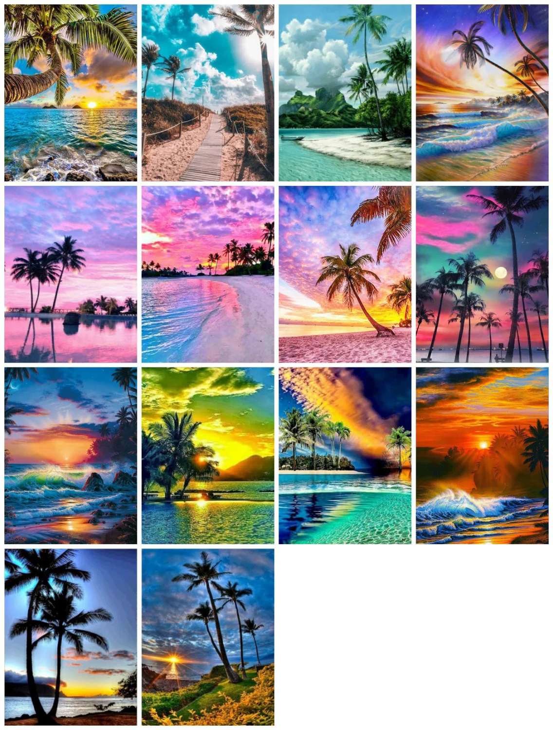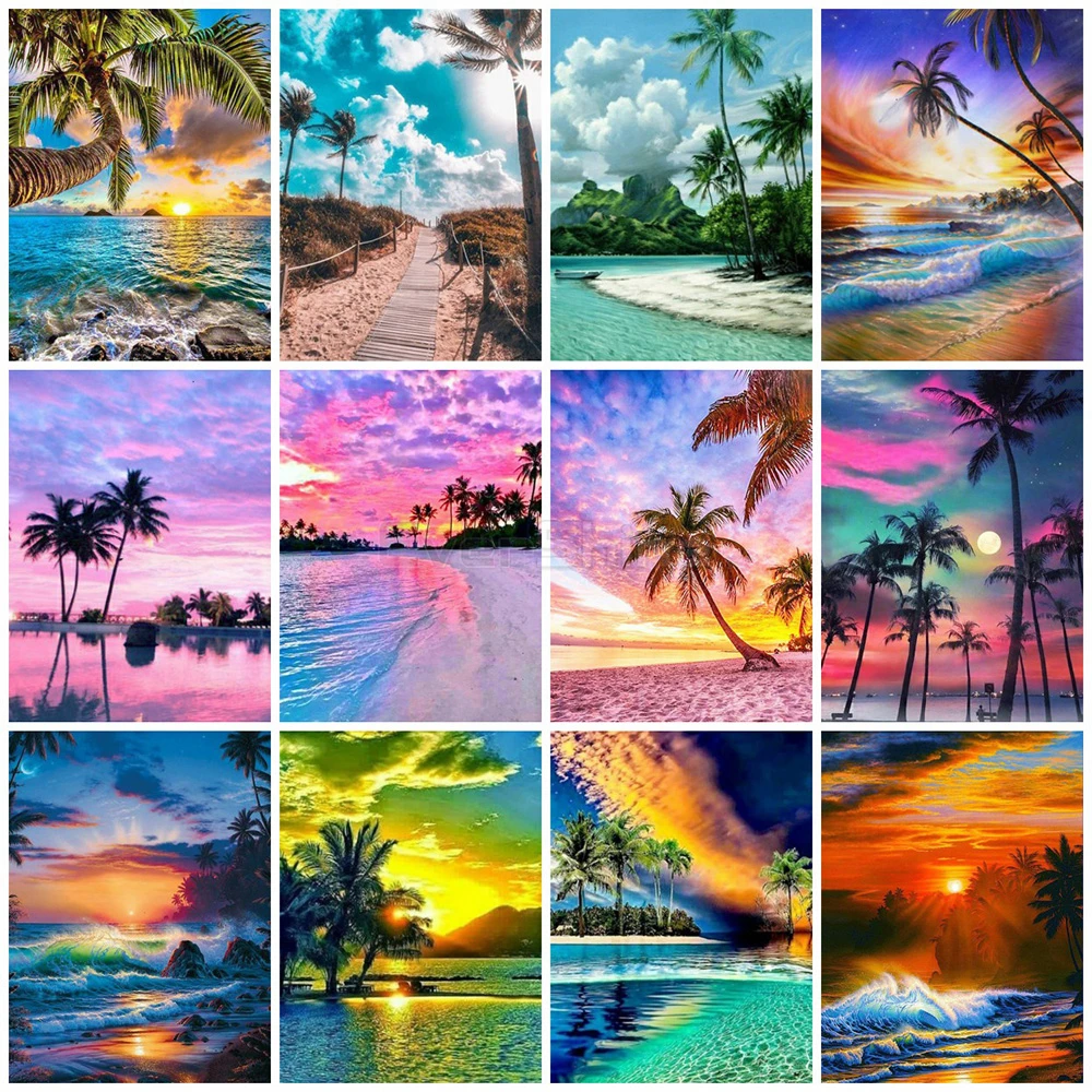 Алмазная живопись EverShine, полноразмерная вышивка с изображением морского берега, пейзажа стразы, мозаика из бисера, кокосовое дерево